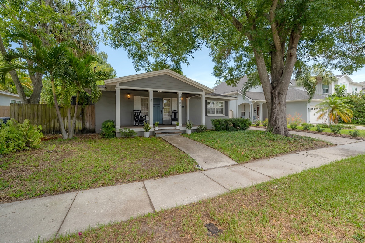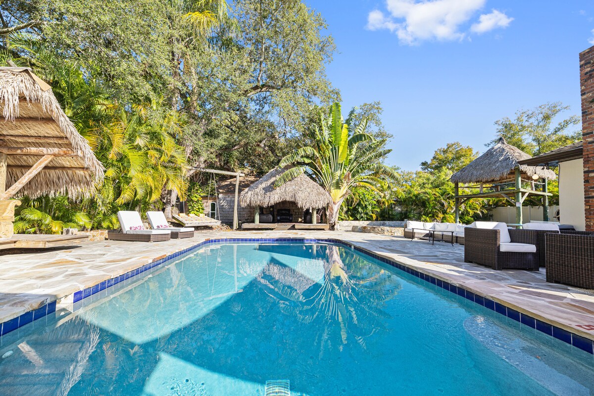 This charming 4 bed- 3 bath bungalow in south tampa has a private screened in pool (with option to heat) and private two person electric infrared sauna attached to a main house and guest house allowing plenty of room for all guests. The convenient location of this property is about 10 minutes to all major attractions including Raymond James Stadium, Downtown Tampa, Water Street, Amalie Arena, The Convention Center and Ybor City.