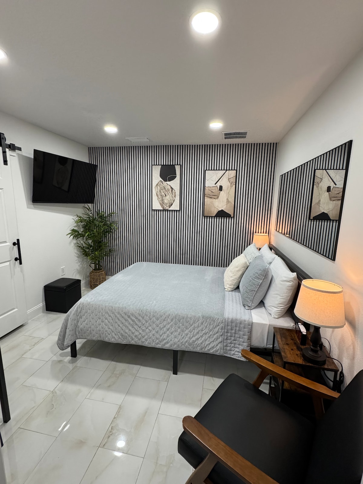 Kick back & relax in this calm, central and stylish space. Location,Location centrally located within 8 mins from Tampa's International Airport, 5 mins from Tampa's renowned Riverwalk and Downtown Tampa & Armature Works, 5 mins from Raymond James Stadium. Our goal is to provide our guests with a clean, safe, comfortable space they can call home while visiting our exciting city. Our newly renovated Apt includes a queen size bed, kitchen, full bath, wifi, private entrance & off street parking.