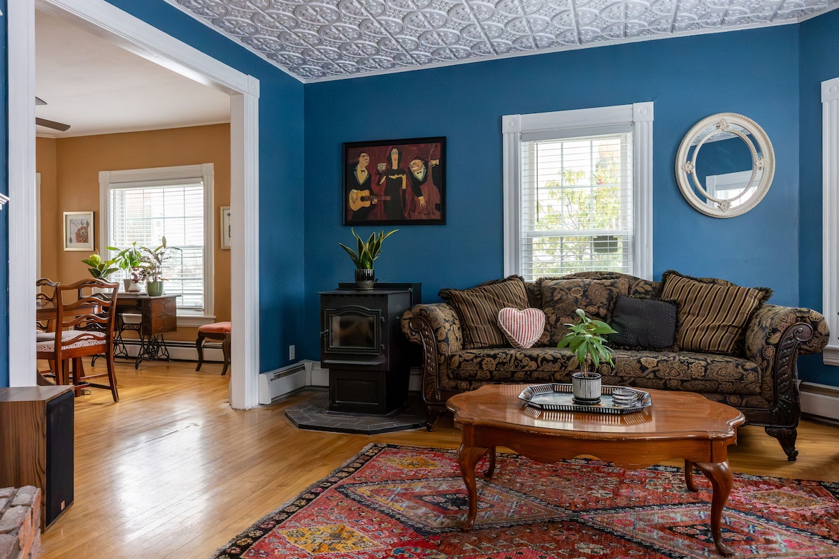 IMMACULATE COUNTRY HOME W/ FAST WiFi in fresh air New Hampshire. Snuggled in on a quiet street, yet steps away from DOWNTOWN, two "Mini Whole Food" markets! State-of-the-art gourmet kitchen fleshed out with organic spices, wares for entertaining, and other luxuries such as a rReverse Osmosis drinking faucet. Stunning sunlit water views and soothing water sounds! Beautiful antique furnishings and marble finishes add to the unique beauty of this New England home.