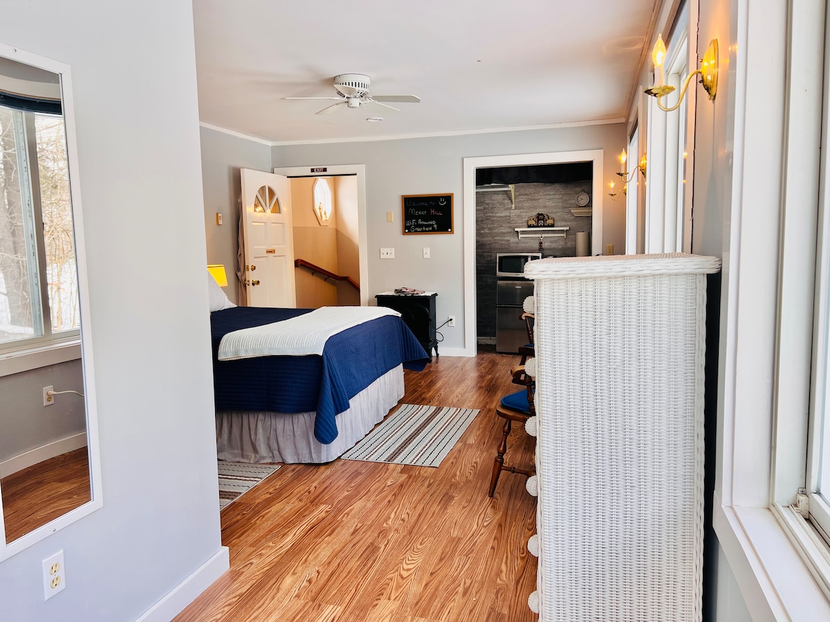 Take a break and unwind at Merry Hill - a peaceful wooded oasis. Merry Hill is located in Greenfield, NH about 10 minutes away from Crotched Mountain for skiing and hiking. We are mid-point between Keene and Manchester. Your private, separate entrance guest suite includes: • Queen Bed with 14” Memory Foam Mattress • Full Bathroom with Tub and Shower • Complimentary Shampoo, Conditioner & Body Wash • Mini-Fridge with Coffee / Tea Station
