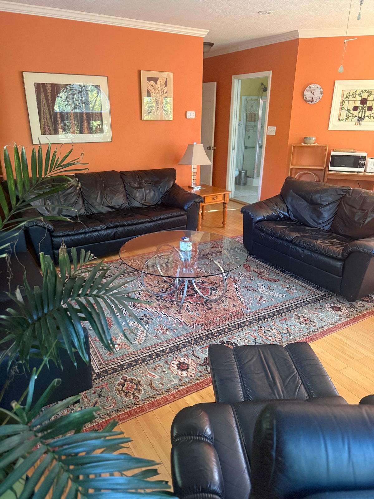Welcome to our Private Luxury Master Suite! Enjoy a hotel-like experience with a spacious luxury bath featuring double sinks and a rain shower and a beautiful private deck with a peaceful view. We also include a coffee bar, work area, Wi-Fi, and TV. Conveniently located from RDU Airport and Downtown Durham, with a variety of restaurants and coffee shops nearby. Experience the perfect blend of comfort, luxury, and convenience in this upgraded suite! Parking is available and limited to 1.