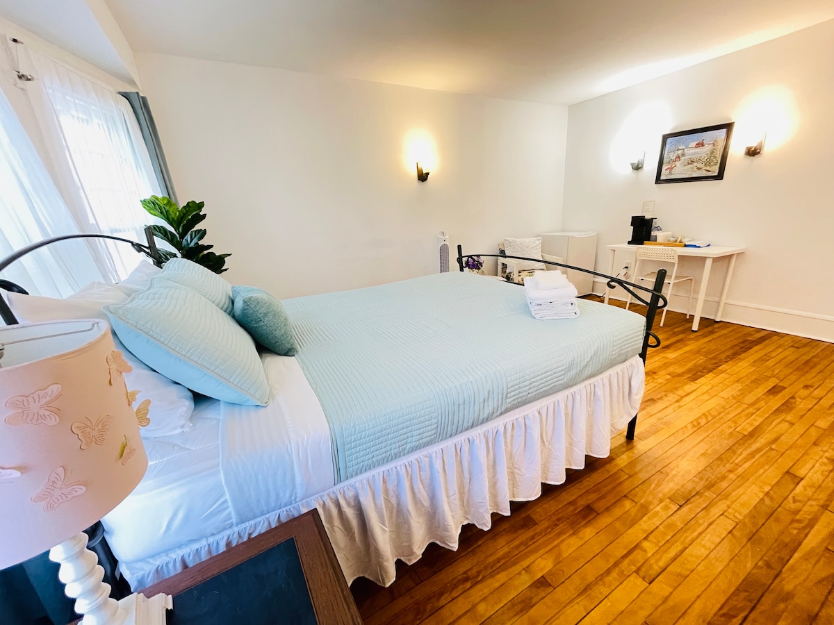 Enjoy a stylish stay in historic downtown Charlottetown that provides walking access to local shops, the water front, pubs & restaurants, theatres and more. This east facing studio apartment suite on the second floor, has all the comforts of home with a fully equipped kitchen, comfortable queen size bed, air conditioning, spacious shower with complimentary shampoo and conditioner. The Cindy Buell suite is perfect for a holiday get away or an executive meeting downtown. Tourism License #4009923