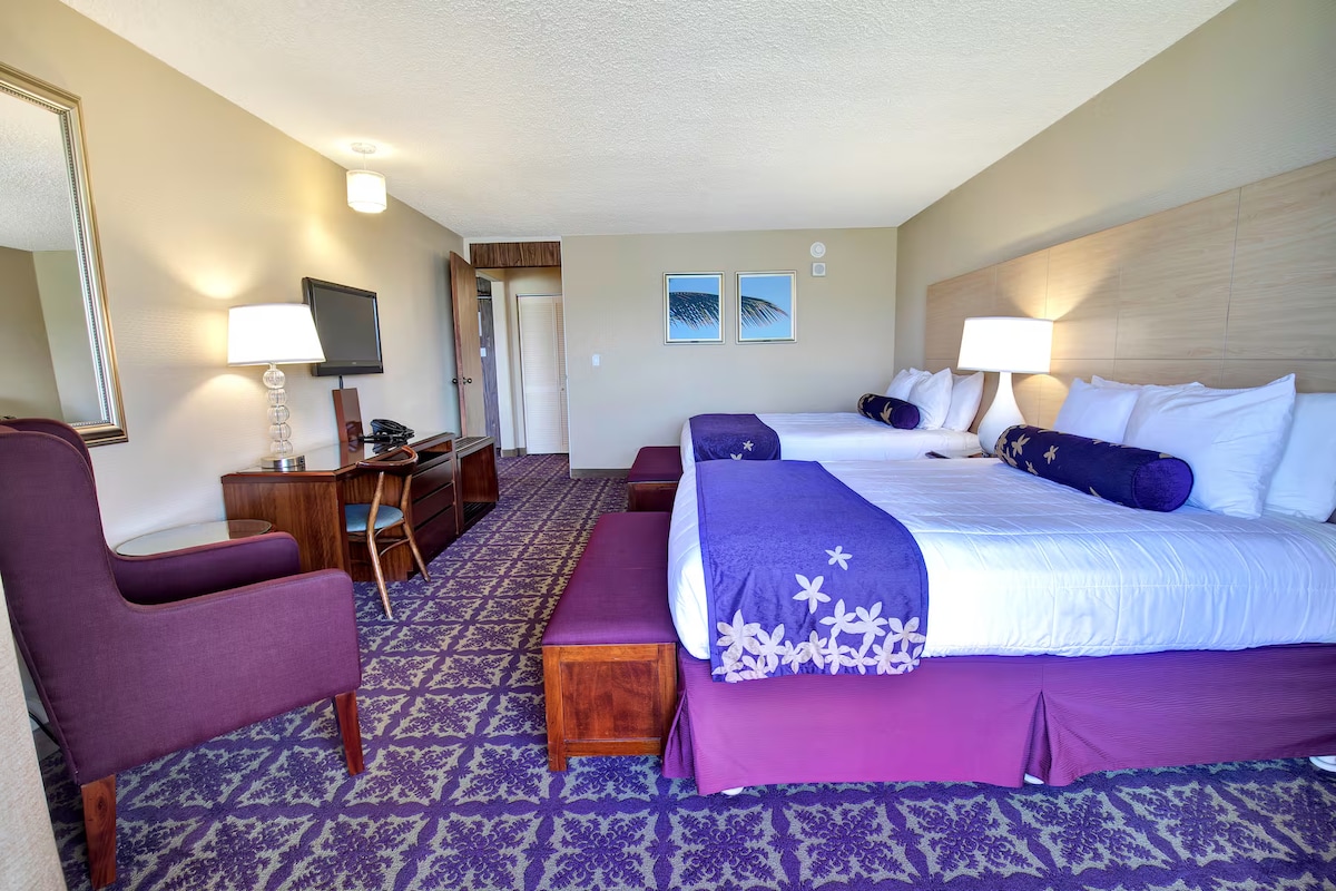 Hilo’s scenic Banyan Way. Perfect for families or small groups, this room offers sustainable luxury with eco-friendly touches. Enjoy amenities like complimentary Wi-Fi, access to SCP Fit’s state-of-the-art fitness center, and outdoor adventures such as paddleboarding in Hilo Bay. Guests also have easy access to the hotel’s Provisions Market and a serene outdoor pool, making it an ideal base for exploring the island's natural beauty