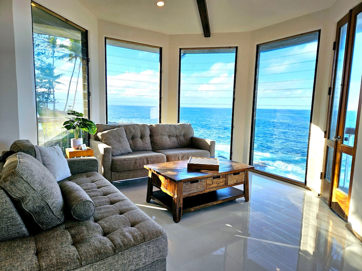 Peaceful oceanfront paradise! Absolute oceanfront paradise on lava cliffs centrally-located between Hilo, Volcano's National Park and Pahoa. See whales (in season November-March), sea turtles and spinner dolphins right from your backyard! Fully remodeled with tasteful design by Nest Egg Interior Design. Pele's Paradise is well stocked with every amenity needed for a long stay including a high-end kitchen, spa-like bath and thoughtful furnishings and details throughout.