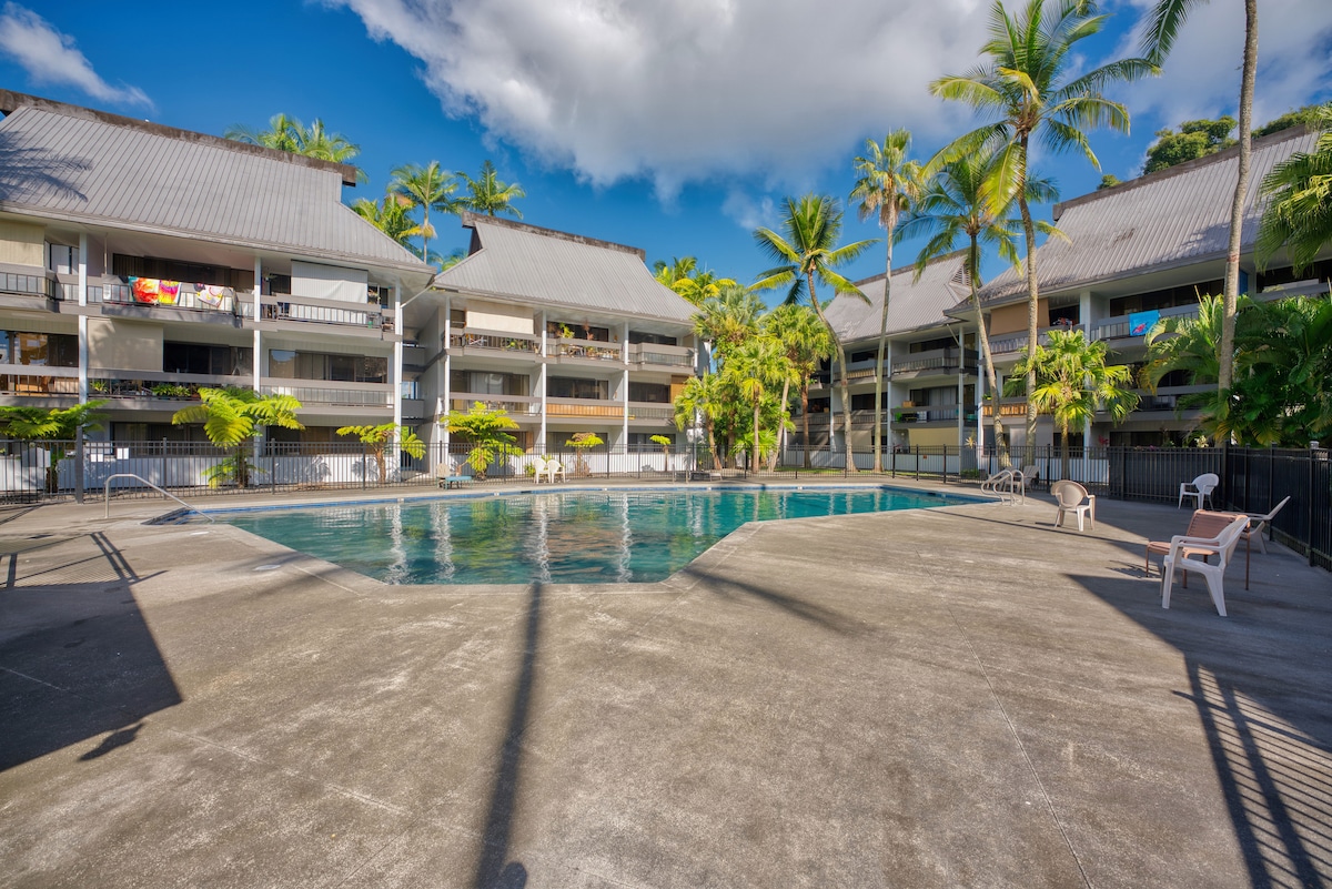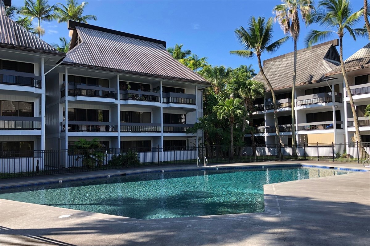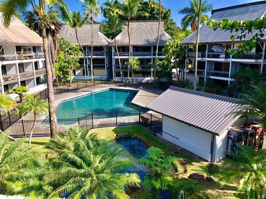 This beautiful air-conditioned condo is perhaps one of the best located accommodations in Hilo. Near the center of town, yet the grounds feel like a Polynesian inspired zen oasis! Koi filled streams and ponds lined with walking trails meander through the complex with swimming pool. Minutes from the airport, farmers markets, golfing, downtown shops, and 100+ restaurants! The complex also backs to Wailoa State Park where you can walk through over 130 acres of beautiful grounds leading to Hilo Bay!