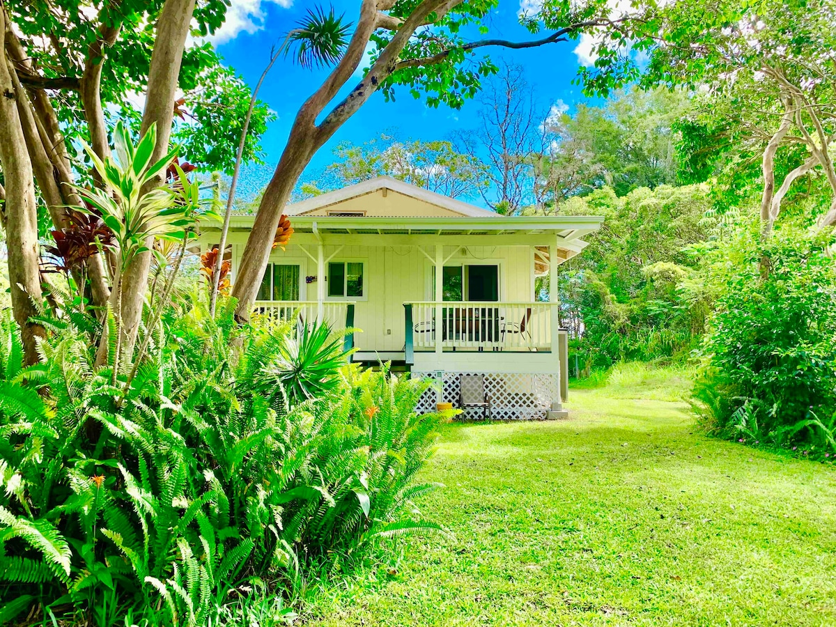 YOUR PRIVATE COTTAGE AMONG THE TREE FERNS Step into a romantic rainforest sanctuary just minutes from Hawaiʻi Volcanoes National Park. Nestled among native ʻōhiʻa and hapuʻu trees, this spacious 850 sq. ft. one-bedroom cottage is perfect for nature lovers, couples, and solo travelers seeking peace and inspiration.