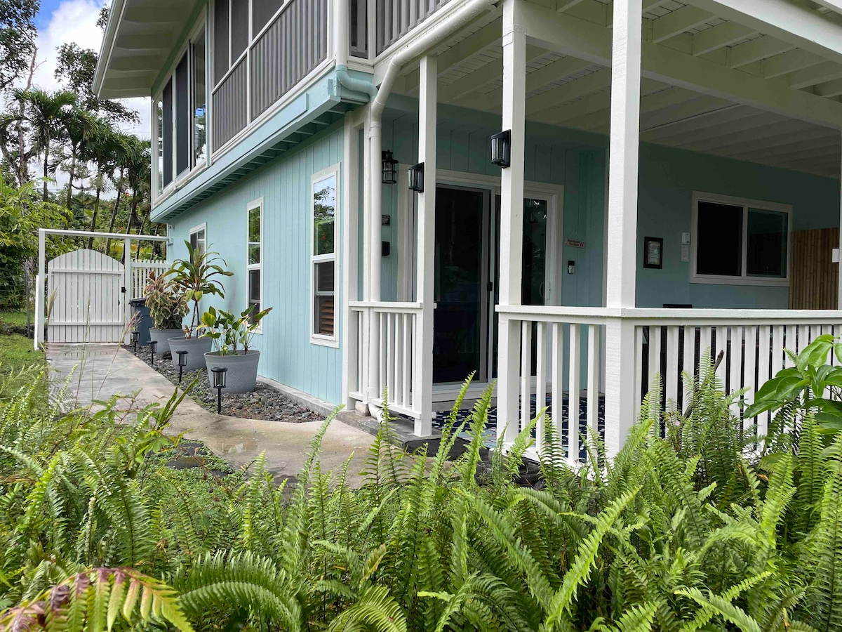 Welcome to ❀Hale Lani - Heavenly House (FULLY LICENSED) We are nestled in 3 lush acres of natural Hawaiian Rain forest on the Big Island of Hawaii Located only 8 miles from Volcano National Park. Enjoy the welcoming spirit of Aloha and let us host you in the style and comfort that you deserve.The unique space has all the comforts of home yet it is paired with adventure and whimsy. A Relaxing net hammock bed for star gazing, outdoor shower, outdoor soaker tub, swing bar chairs, and thatched bar