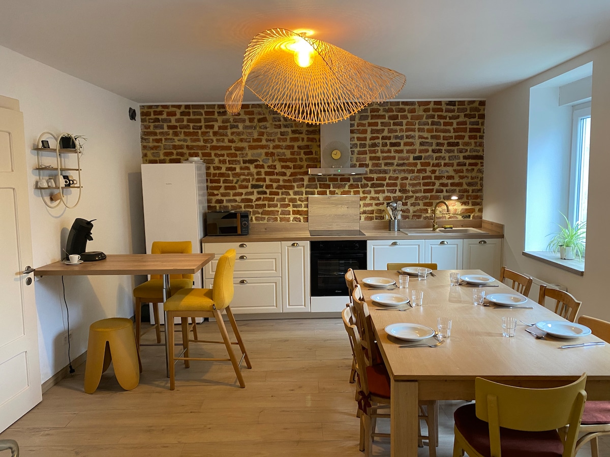 Appartement neuf, spacieux, lumineux, situé en lisière de forêt dans un petit village. Vous y trouverez une chambre et son dressing (équipement repassage), une cuisine équipée (lave-vaisselle) ouverte sur un salon, une salle de bain avec baignoire (lave-linge,sèche-cheveux)) , un WC et un local pour entreposer vos propres vélo. Vous y séjournerez de façon autonome grâce à son entrée indépendante. Proche de l'Allemagne (20 min). Produits ménagers et aliments de première nécessité sur place.