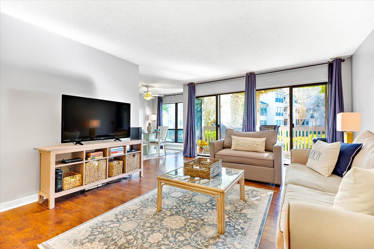 Wonderfully appointed 2 BR 2 bath condominium located on the bottom floor of the Spa on Port Royal Sound in beautiful Hilton Head Island. The corner unit is next to the pool and a stone's throw from the beach. The complex is across the street from two of the oldest historic parks in Hilton Head. With the exception of the occasional person walking or jogging automobile traffic is almost nonexistent since the Spa is located on a side street.