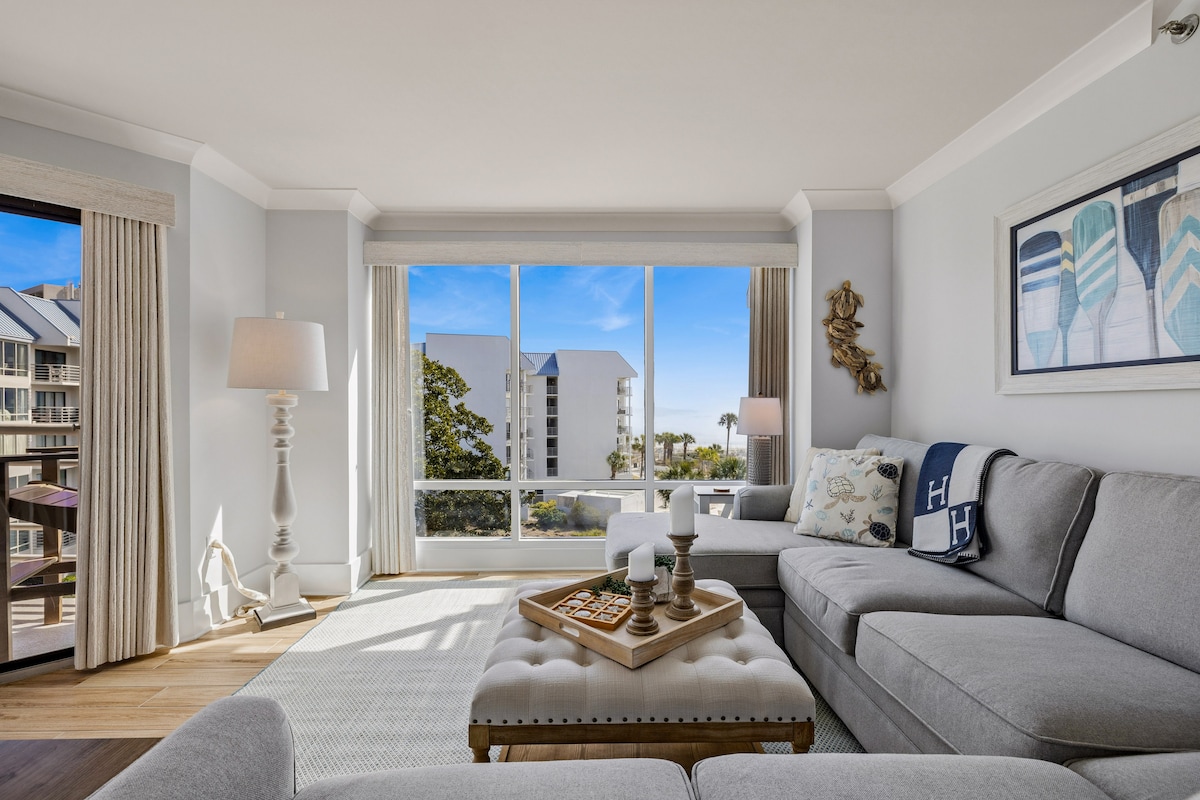 Oceanfront, beautifully renovated Villamare condo with stunning ocean and pool views from the private balcony. This spacious 4th-floor retreat features a full kitchen, comfortable living area, and two bedrooms with Smart TVs and charging stations. Enjoy direct beach access plus resort amenities including two oceanfront pools with hot tubs, a fitness center, and the only indoor pool at an oceanfront resort on Hilton Head.