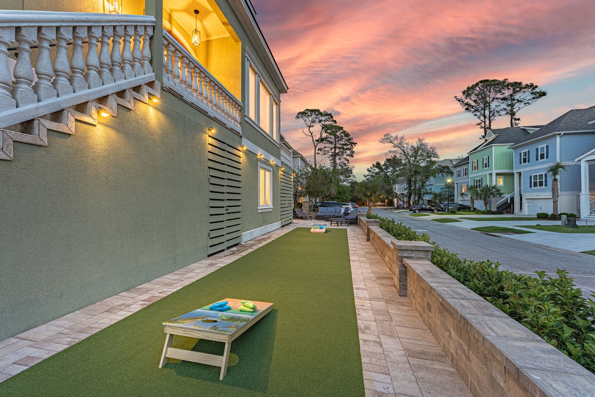 One of our newest homes, see our over 1000 *5*star reviews. Sunset Lagoon offers the ultimate peaceful getaway, nestled on a cul-de-sac in the serene Shipyard community. Overlooking a picturesque lagoon, this spacious home features two levels of entertainment space, including a cozy outdoor firepit—perfect for unwinding after a day of exploring.