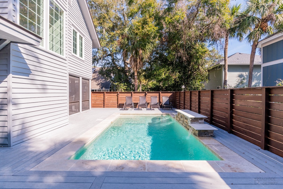 Luxury 3br/2.5ba 2900 sq ft home in Shipyard- Sleeps 10. ** NEW POOL and PUTTING GREEN** Close to golf, tennis, Coligny, Celebration Park, short bike or drive to the beach, in a quiet gated community setting. Bike trails throughout the community. King en suite, queen bedroom and bunk room share jack and Jill bath. Queen sleeper sofa in sunroom for overflow guests. Spacious, comfortable, and perfect for family fun at the beach! Bed and bath linens are included, bring your own beach towels