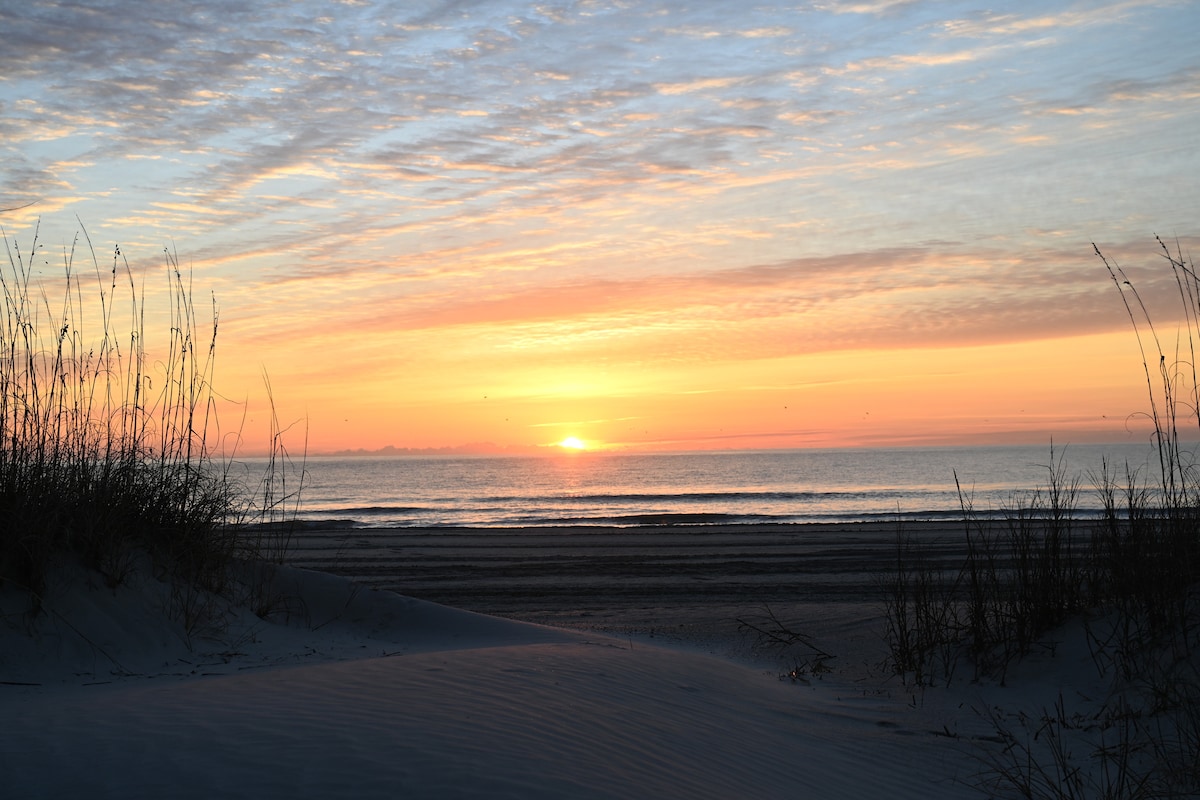 Fully Furnished, Renovated Non-Smoking Villa sleeps 7 - King bed in Master, 2 Single beds in Guest Room, Leather Queen Sofa Bed & Rollaway Bed. Built-in Bar, Fully-equipped Kitchen w/ small appliances. Beach Chairs, toys, games, cards. Flat Screen HDTV w/ hundreds of channels, DVD, Free Wi-Fi. Overhead Lighting & Ceiling fans in bdrms, extra blankets & pillows. Restaurants, Tennis, Pickleball, Bike Rentals, 2 Pools. Sip cold drinks on the wide sandy beach & watch Amazing Sunrises & Sunsets.
