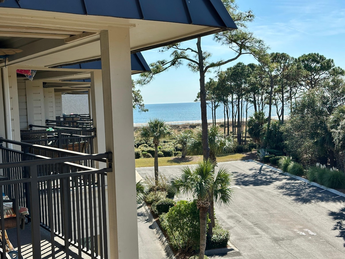 Newly remodeled just last year! Adorable beach front condo located in HH Beach & Tennis Resort. Watch & listen to the ocean waves right from your 2nd floor balcony! The condo is in a gated area within where guests will have access to a private beach, 2 pools, resort restaurants, tennis, pickleball, beach volleyball, playgrounds, cookout areas, bike rental, and a gym. We also provide beach chairs, coolers, boogie boards and coffee! It's all here! The getaway you've been waiting for and deserve!