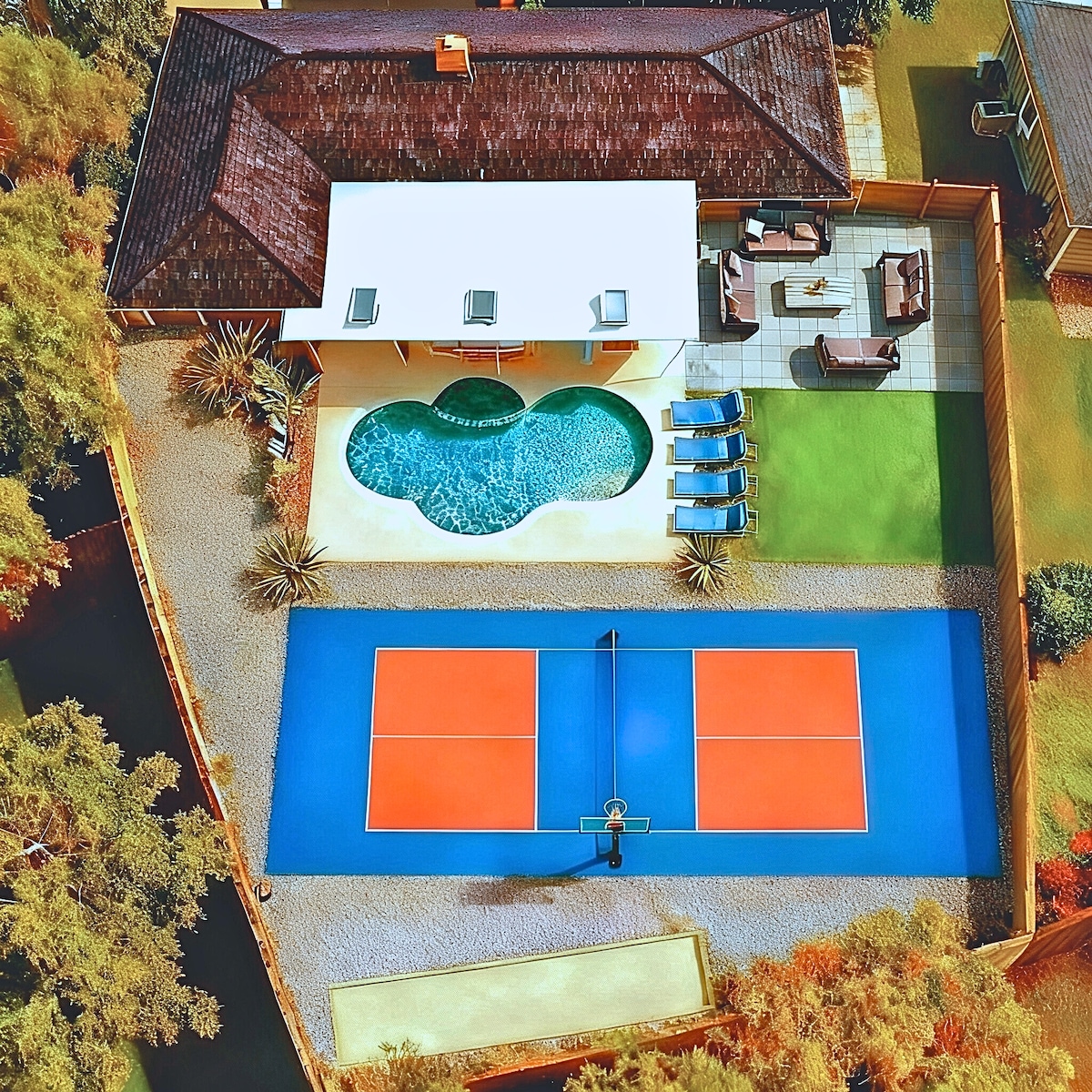 匹克球+泳池+游戏室