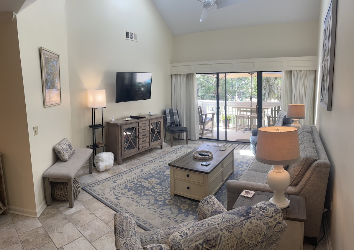 Indulge in our serene & beautiful 2 bedroom beach villa at the Hilton Head Resort. Private balcony & KING bed! Our oceanside gated Resort community awaits you with private beach access-just a short walk over our picturesque boardwalk and all resort amenities are included. ⭐️⭐️⭐️⭐️⭐️ 5 STAR REVIEW Maurice & Marilyn's place is absolutely wonderful & spacious. Dealing with them was so easy and they were super responsive. Would definitely stay there again in the future. Highly recommend!