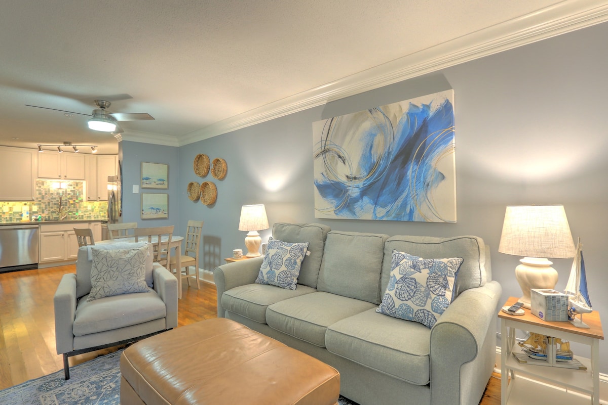 Welcome to our newly renovated 1st floor unit in Fiddler's Cove. Perfect for a tennis, pickleball, golf, biking or beach holiday! A 5-7 min walk to Folly Field beach via a private beach access available to our guests. Use our beach gear. Great secure wifi. Surrounded by world class golf courses. Enjoy 5 star amenities including 2 pools, hot tub, racquetball, pickle ball courts and gym. Pools are open from march 1st-October 31st and hot tub remains open year round.