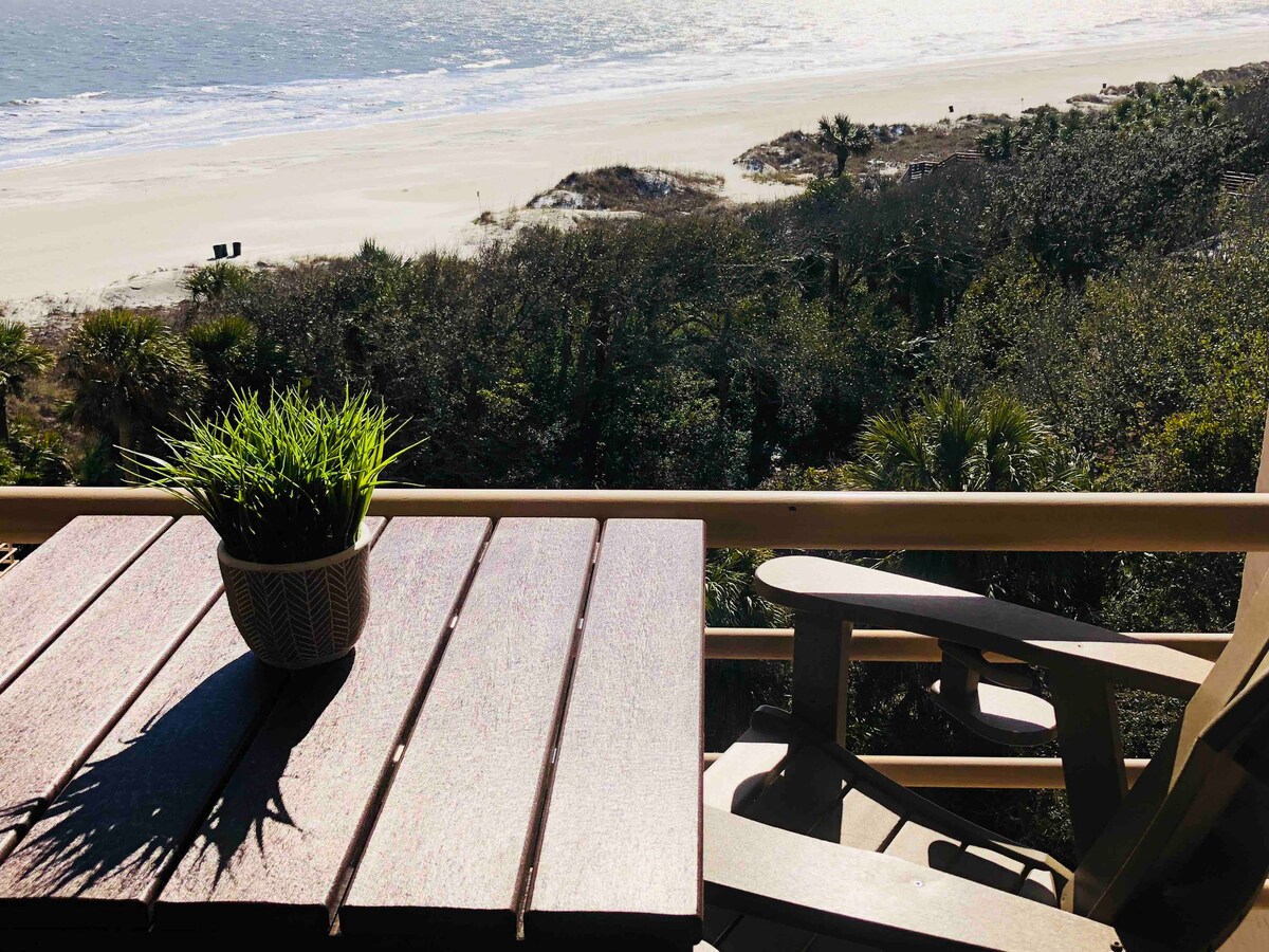 Indulge in our serene & beautiful 2 bedroom beach villa with a comfy king bed. Private terrace off the master bedroom and located on the top floor so no noise above you. Our oceanside gated Resort community awaits you with private beach access-just a short walk over our picturesque boardwalk and all resort amenities are included. Shelter Cove shops, restaurants & supermarket are nearby and we are next door to Palmetto Dunes golf course. Great for families or couples. Perfect mid island location!