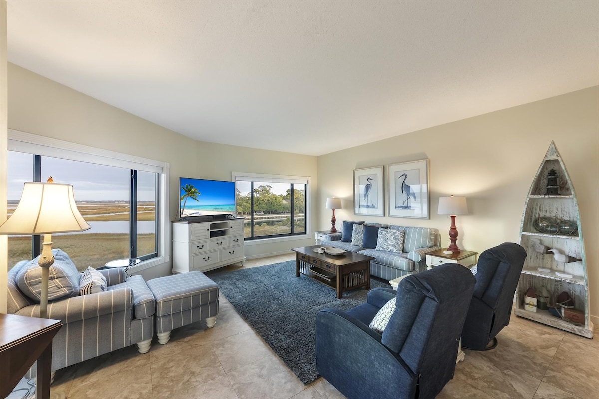Read our reviews! We strive to provide an unforgettable Hilton Head experience in our updated villa with ocean views, comfortable lounging, plush beds, well-appointed kitchen and 500+Mbps WiFi! Our bright, open living space features floor-to-ceiling windows overlooking the pool, beach and the Atlantic Ocean! The living room sectional expands into a massive lounger for all! Have a big group? We also offer the immediately next-door unit, identical to this one!