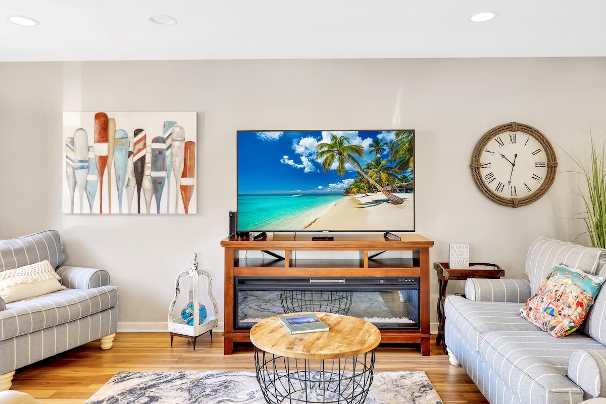 豪华海滨!特大号床65英寸电视匹克球和酒吧