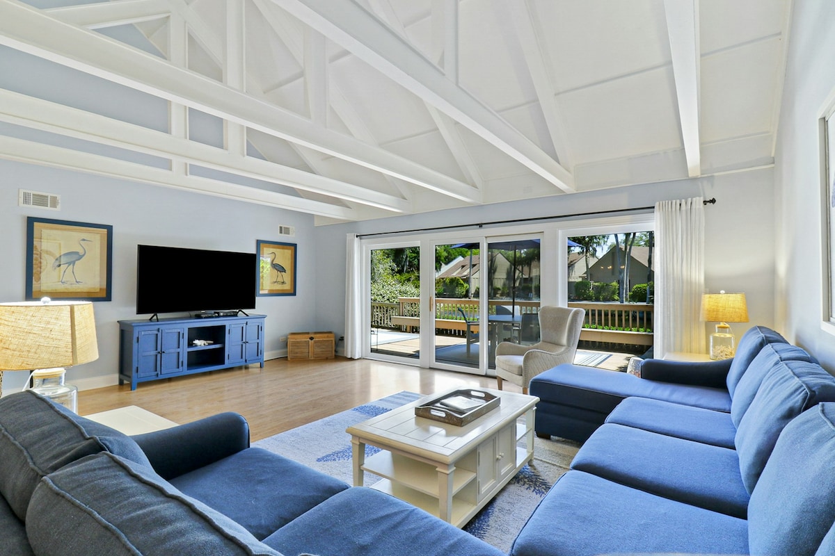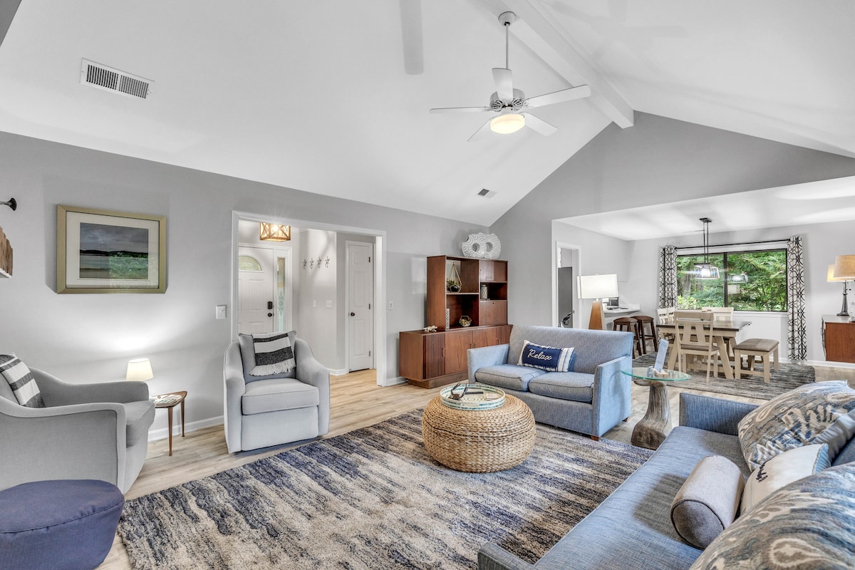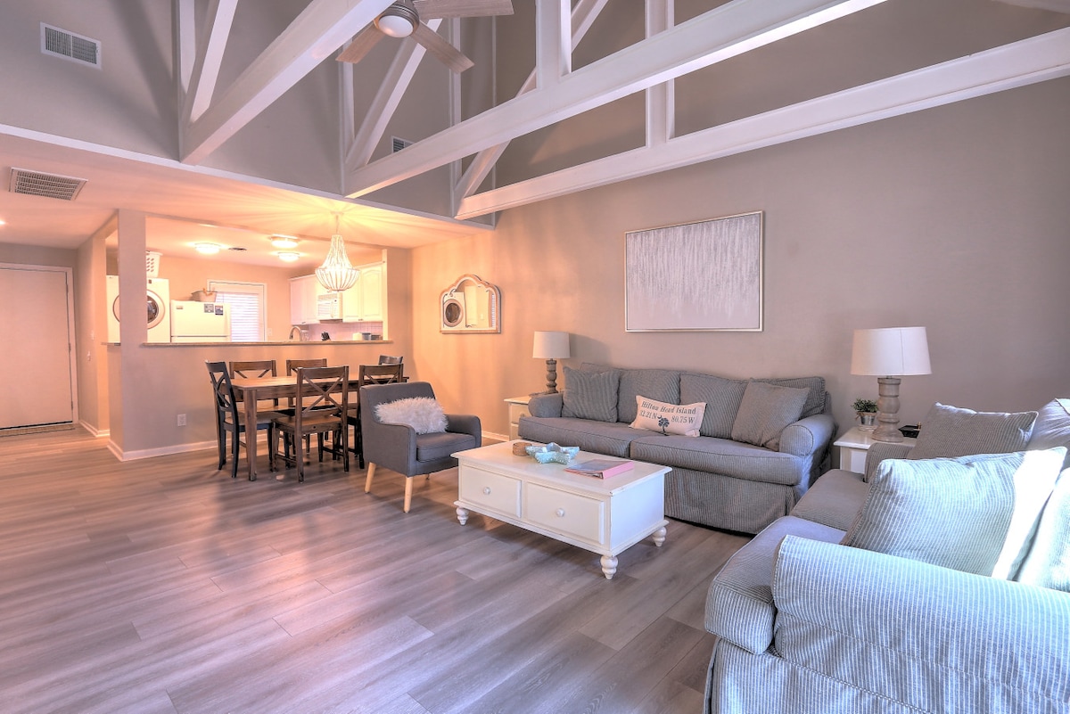 5-10 minute walk to the pristine Hilton Head beach, retreat to your spacious villa in Queen's Grant of Palmetto Dunes. With nearly 1500sq ft and lofted ceilings, you can spread out comfortably. New living room furniture that all reclines, amazing king green tea memory foam mattress in both bedrooms, and a fully stocked kitchen (blender, toaster oven, crock pot+.) The master and living room open up to a private back patio equipped with a grill, dining room table and beach accessories.