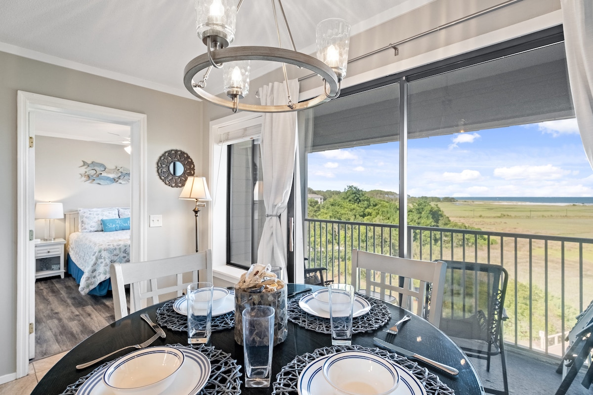 Get away from the cold and snow....Now is the perfect time to be at the BEACH! Welcome to your Hilton Head Island getaway! Beautifully renovated condo, top floor, walk to the beach with Panoramic Ocean Views! Ideal for families, couples, girls' weekends, and golf enthusiasts! Enjoy amazing sunrises from the patio. Located in a gated complex with access to the most beautiful beach on HHI via a private boardwalk. Easy keyless entry, located in Building 2. Superhost where hospitality is #1!