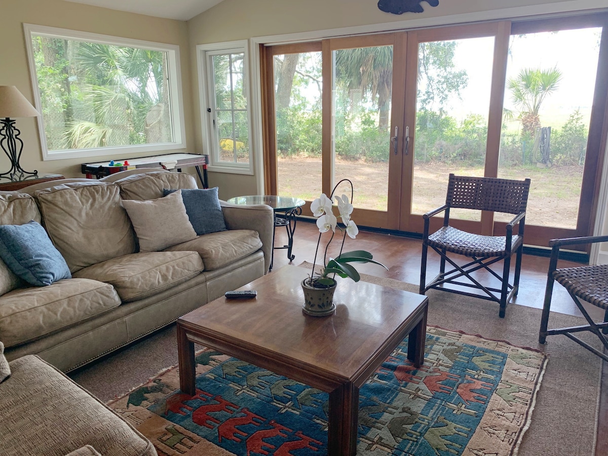 Our home is second row at Burkes Beach. Close to Palmetto Dunes Plantation Golf and Tennis , Port Royal Plantation Golf and Tennis. Convenient mid Island location. It is great for couples, solo adventurists, and families (not set up for toddlers and younger). Steps to the beach path and Chaplin Park, which has lit tennis courts, park and picnic areas. Walk or bike on beach to Coco's Beach Bar or Marriott Beach Bar. Open floor plan and under house parking. OWNER IS A LICENSED REALTOR.