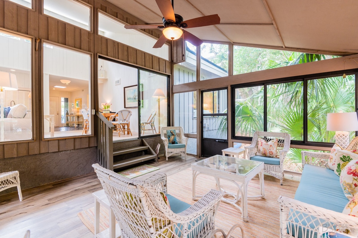 Waterfront and sunset views abound in this unique "treehouse", with 360 degree views. On Deer Island, just steps from the Harbour Town Lighthouse, known for its' large-boat marina, restaurants, shops and Golf Club, host of the RBC Heritage Classic, PGA Tour Event. Enjoy all the amenities of Sea Pines, including the South Beach Marina, Sea Pines Beach and Salty Dog Cafe, only 3 miles away, serviced by trollies & bike paths. Enjoy the sunset seated around the firepit. Gas grill with a view