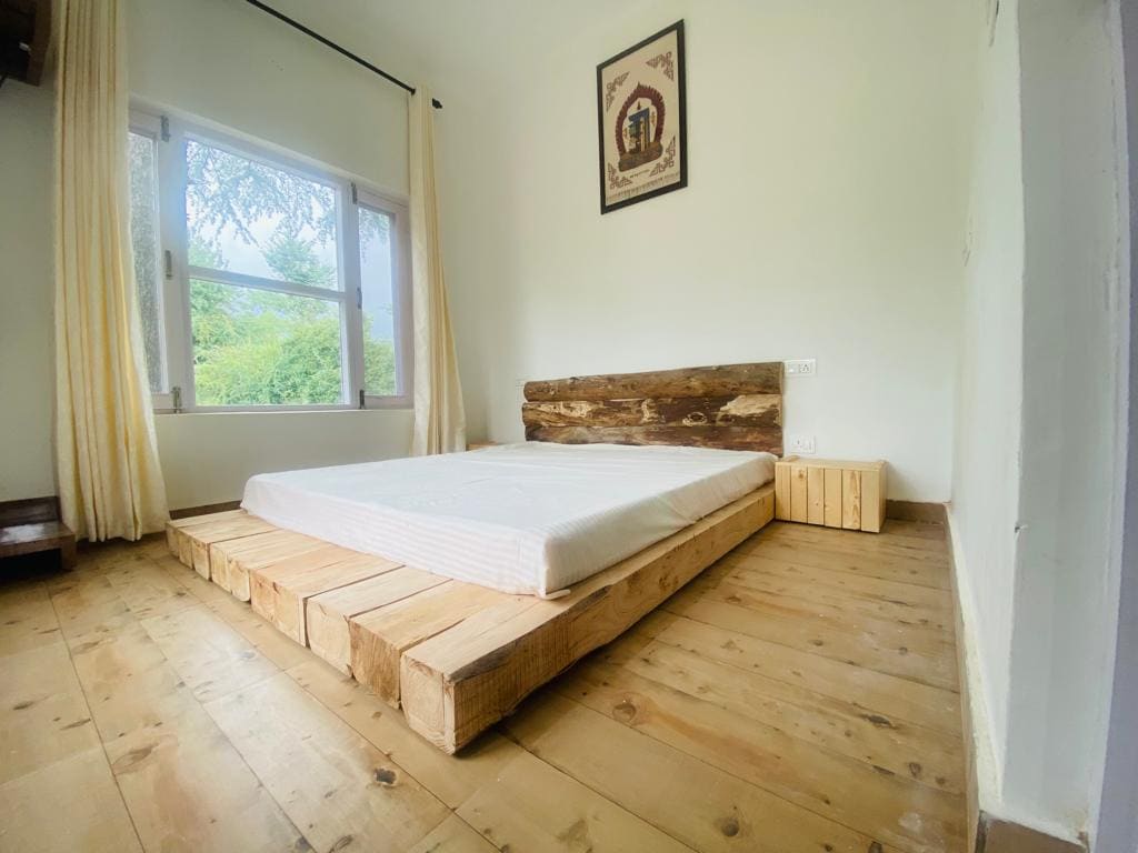 Have fun with the whole family at this stylish place. You will have spacious and Luxury Duplex chalet suitable for one couple or a family of four guests. ★ Master bedroom & attic ★ Wooden & Stone Architecture ★ Panoramic Valley view ★ Nearby Paragliding site ★ Bathtub ★ Power backup ★ WiFi ★ Indoor Fireplace ★ in-house food service ★ Garden & Bonfire area Please note : - Breakfast, Meals, Room heaters, Firewood, & all other services are exclusive of stay price here