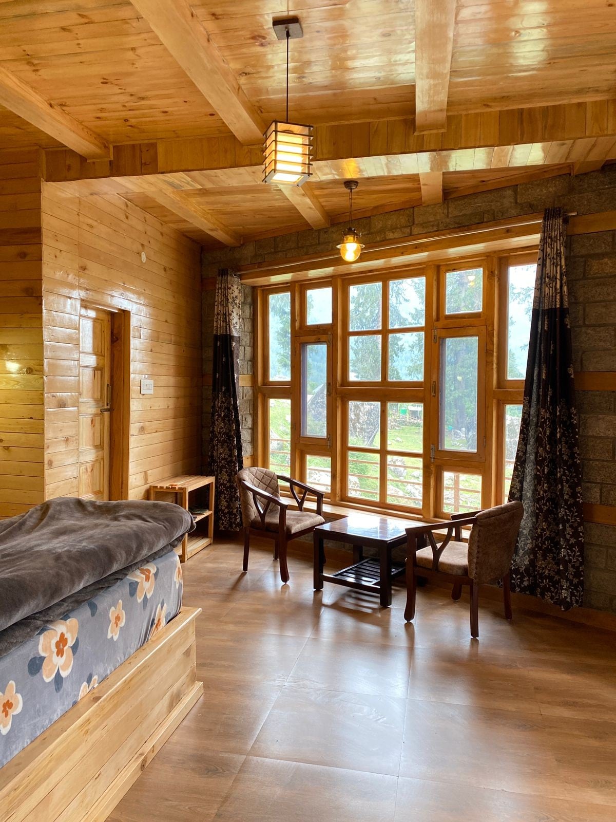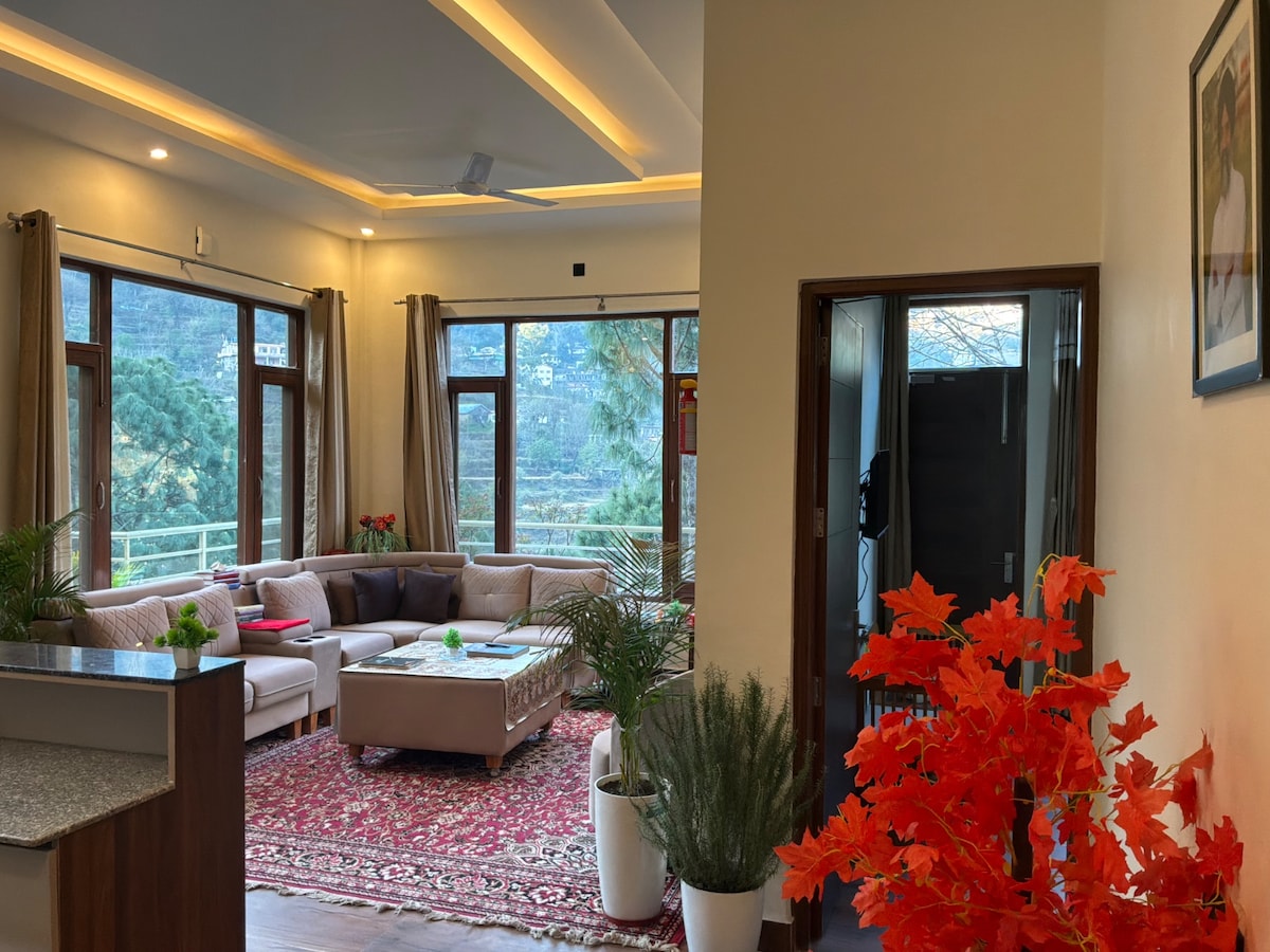 This home-stay is located at the most stunning views of manali. Walking away from hadimba temple and the nature walk. 3 kms from the mall road. 2 kms walk to the old manali bridge. Our property is 2 cottages where we have these floors of 2-3 rooms each with private balconies and beautiful outdoor seatings. This one is at the first floor. We have a in house cook where you can get anything made on order or choose from our in house menu.