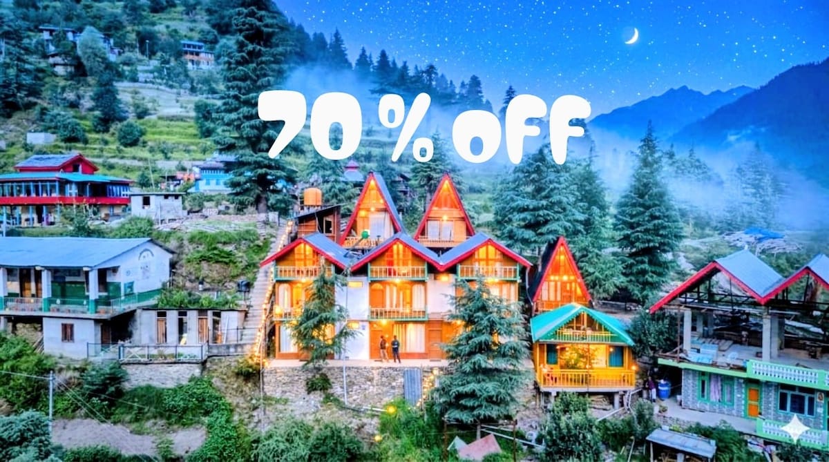 Our property "Iris Cottage and Cafe - Manali", message us to get discount for a long stay. What you get: Private Room | Private Patio | attached washroom with geyser | Work-friendly space with chair, Outside Patio area is with Sofa, couch and Also floor Mattress to sit and work There is an in-house work-friendly Cafe to enjoy delicious food or use the area to work. Food facility: Above tariff on Airbnb is only Accommodation, does not include food or a Room Heater.