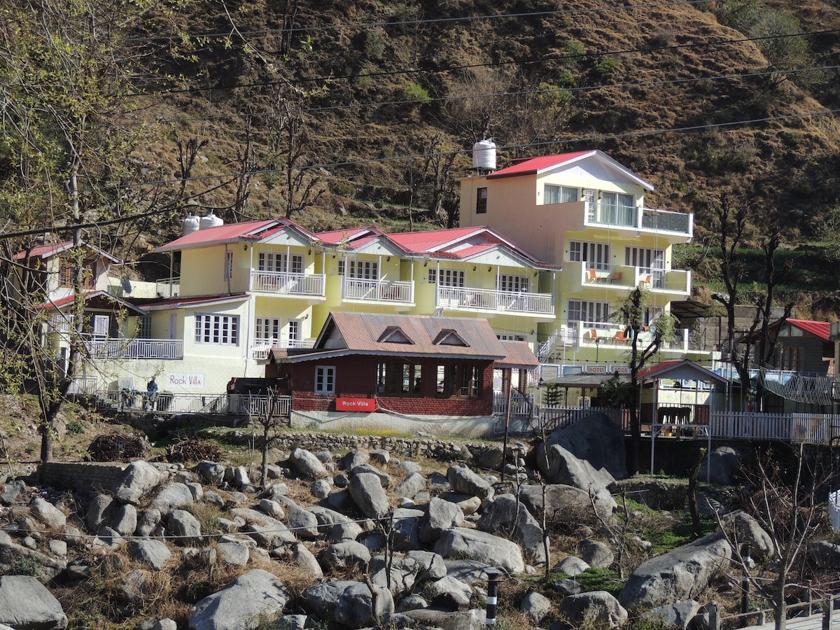 This room is top floor room. Hand crafted 4 room boutique property far away from crowd in the lap of nature. Developed keeping in mind those who love peace, seclusion and some quiet time, just like us. Bathe in sun, laze around, go for a walk or small hike. Eat healthy food, do yoga and meditation with us! Rejuvenation and relaxation in the true sense of word.
