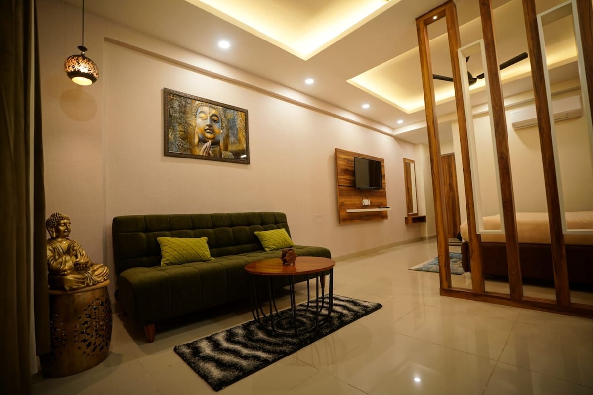 IG - Azariastays Azaria Stays is a lavish studio apartment in Maya Garden Magnesia, Zirakpur which is on the Delhi-Chandigarh Highway. Walk to Starbucks, McDonald's, Burger King, Uniqlo and fine dining at Romeo Lane. Ideal for a comfortable, aesthetic stay ! This special place is close to everything, making it easy to plan your visit. IDs we need before checkin of both persons. (At additional cost) Pick/drop service from airport/railway station, Also u can book car for local sight-seen.