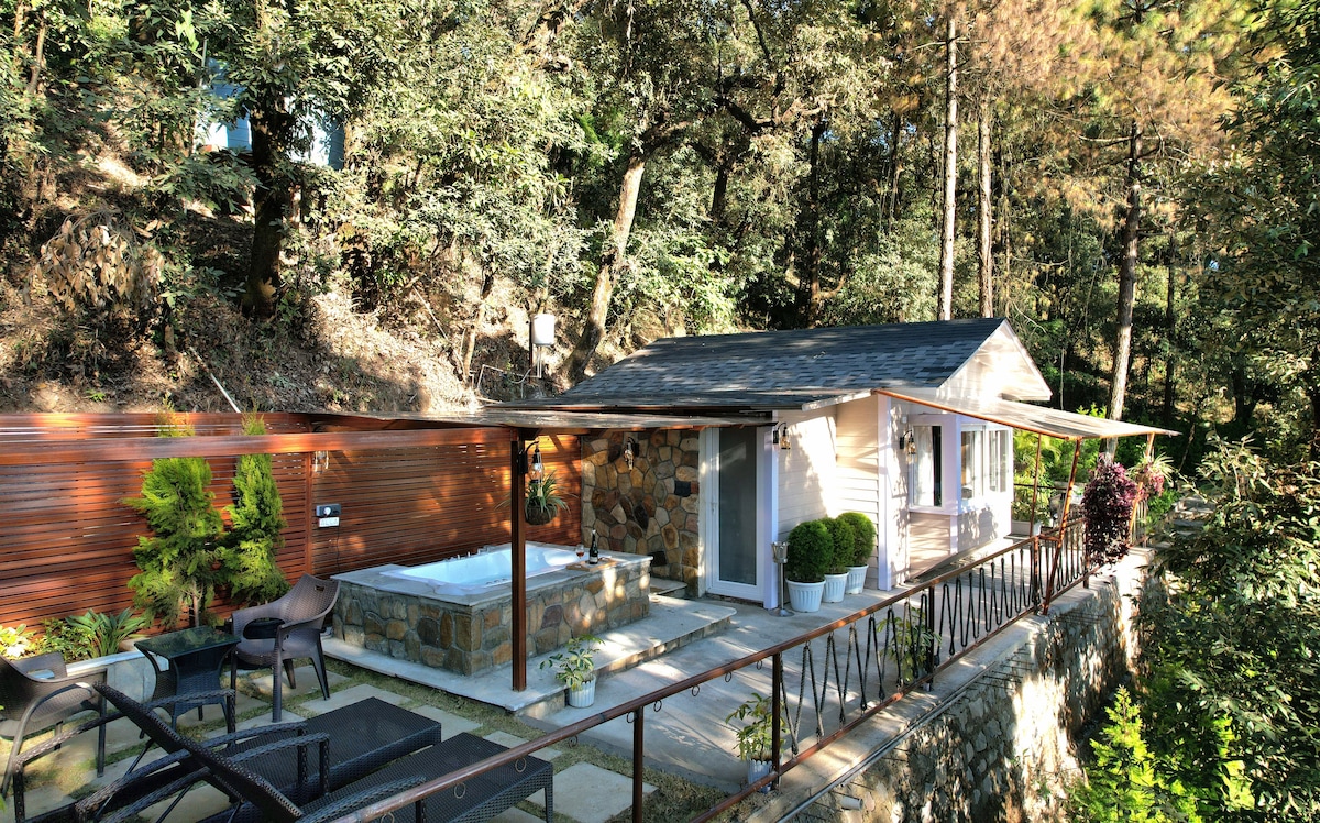 Camouflaged amidst a private Apple Orchard and overlooking a mesmerising valley through its all-glass front, Hakushu is an exclusive private retreat that offers the rare luxuries of time and space. Consisting of just 01 bedroom, a private hot water jacuzzi and a large living area around a fireplace, this luxury Mountain Cabin, located in a remote village called Sainj about 50 km from Shimla, is an ideal getaway for a couple or a small family looking to explore the wonders of nature .