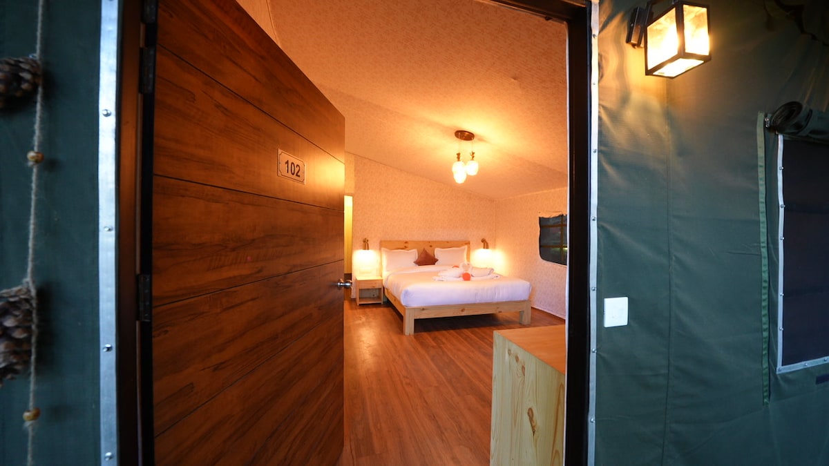 Perched among whispering pines, this luxury treehouse offers the perfect blend of comfort, romance, and natural beauty. Unwind in your private jacuzzi as you take in panoramic views of the Himalayas, or cozy up with your partner in a warm, wood-finished interior designed for serenity and connection. Located right on the road for easy access—no trekking required—yet surrounded by nature, it’s an ideal getaway for couples seeking privacy, comfort, and a touch of magic in the mountains.