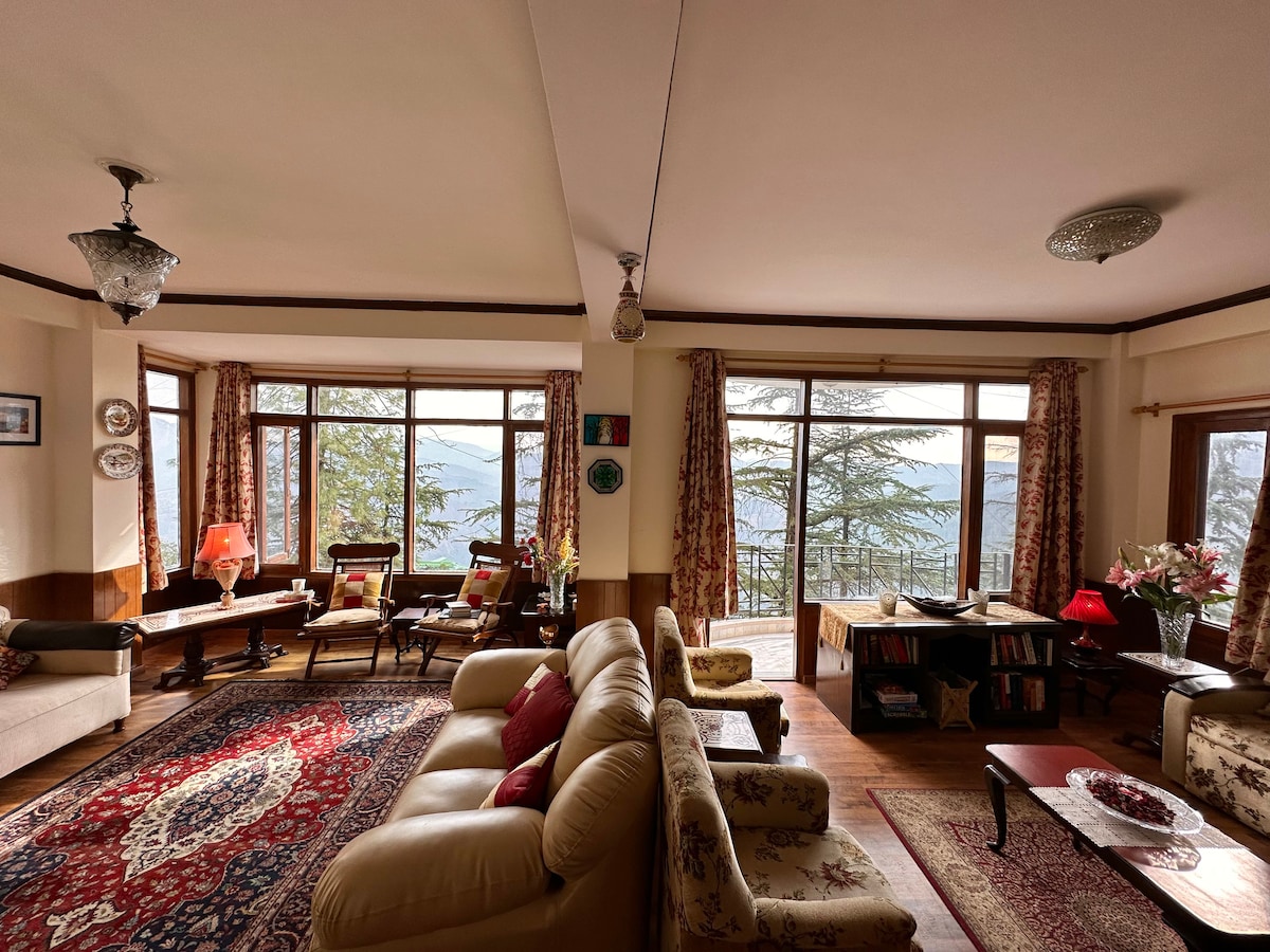 Breathe the fresh mountain air at our Opulent Fully Equipped 2 Bedroom Apartment with a view of a beautiful valley, a thick cedar forest as well the snow capped mountains in Mashobra -Incredible 180 degree View from our Large Living Room -Exclusive Private Outdoor Sit Out -Free Driver’s Accommodation -Grocery Store is 2 Minutes Away -Caretaker on site -30 Minutes Drive from Shimla Mall Road -2 KMs Walk from Craignano National Park -20 Minutes Drive from Naldehra Golf Course