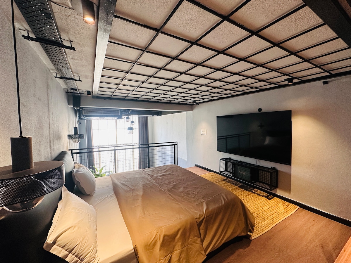 Discover our elegant two-story loft in Dehradun! Featuring a cozy bedroom & sofa bed, free Wi-Fi, AC, TV, and 2 private bathrooms. Work comfortably at a dedicated workstation in a space with high ceilings, large windows, a private balcony, and terrace. Experience a fully equipped kitchen paired with an inviting and innovative loft net, along with essential comforts such as a First Aid Kit, fire extinguisher, free parking, seamless self-check-in, board games, hair dryer, iron and a baby chair.