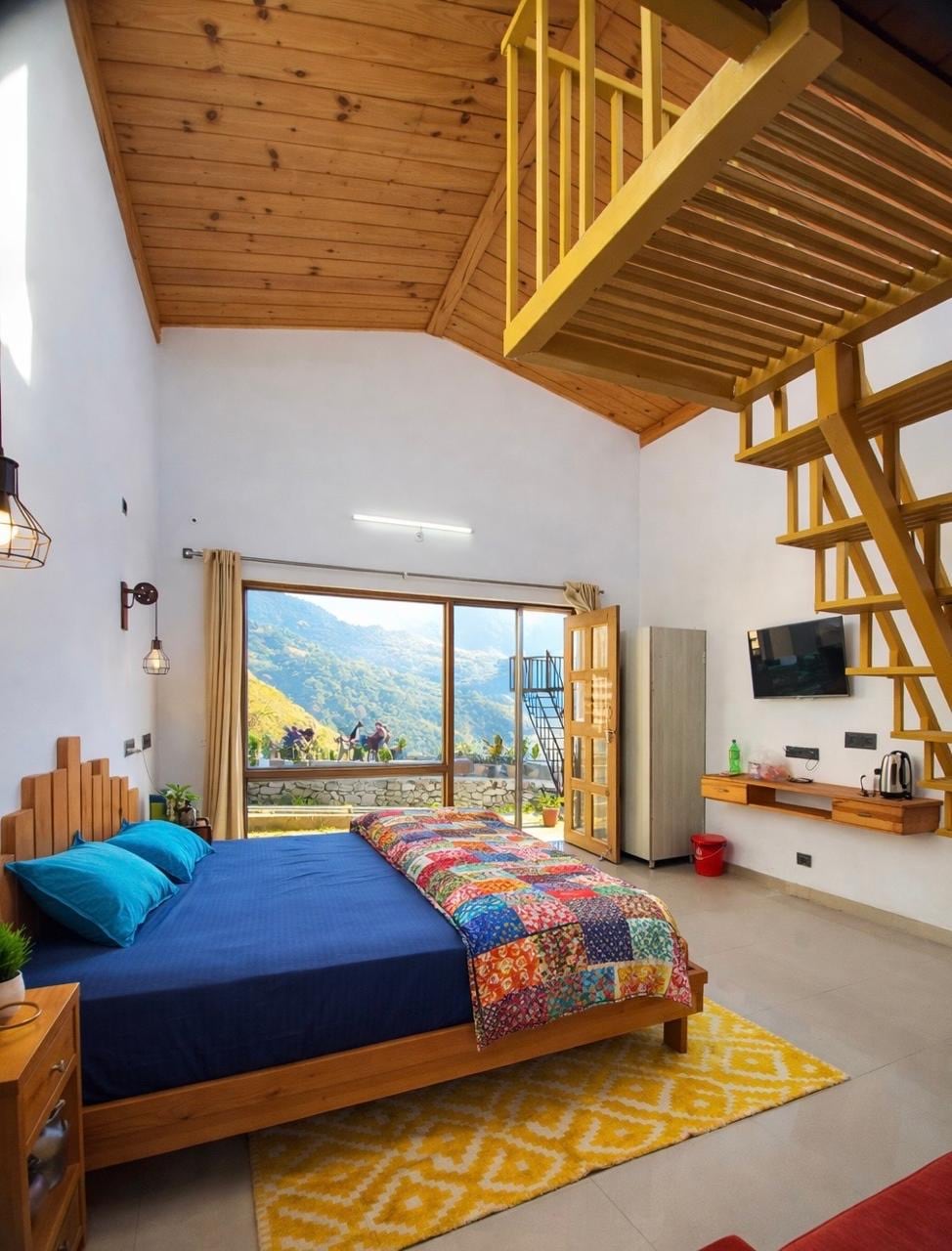 Experience the perfect blend of nature and opulence, perched atop Tandi hill near Jibhi. Delight in a luxurious soak in a hot bubble bath while relishing breathtaking views directly from your bathtub. Nestled away from road and traffic noise, the only sounds you'll encounter are the melodic chirping of birds. With an all-glass cabin, you might even spot a flying squirrel or catch a glimpse of a shooting star in serene night sky. Unwind and enjoy the tranquility of this chic, peaceful retreat.