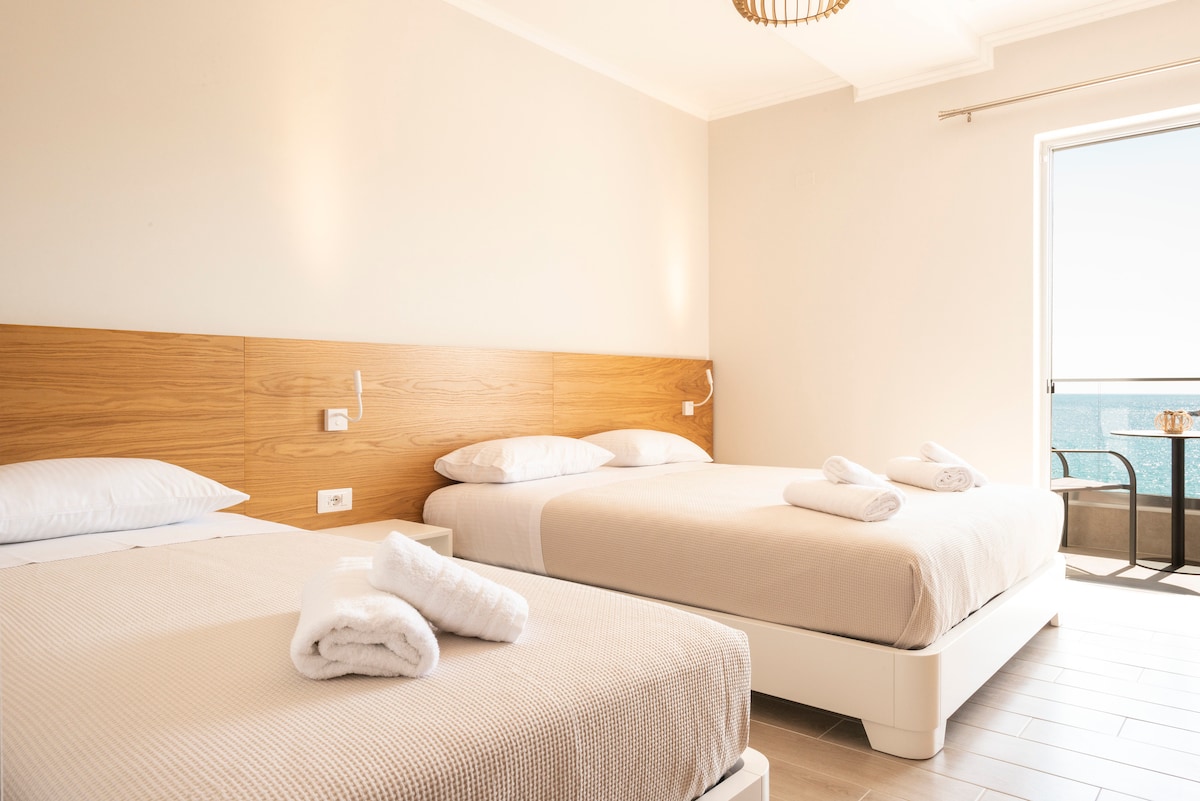 Have you ever imagine waking up from the sound of the waves in a big, bright apartment with a Maldives alike seaview? This is a very spacious apartment in the very first line from the sea. The apartment is furnished with modern furnitures and appliances. It is located in the port neighborhood of Saranda in a 10minutes walk from the center.Relax in a peaceful enviroment and enjoy the endless blue.