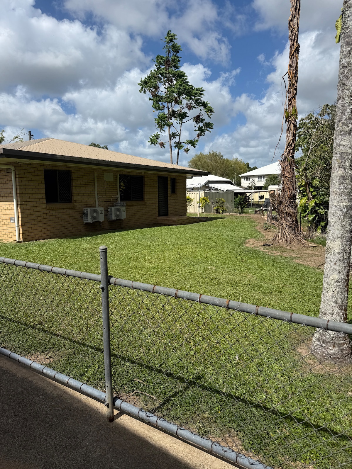 The house is situated close to the CBD of Ingham and Railway station. The Herbert River district is sugar cane growing district, so therefore sugar trains run 24/7 from mid June to end November so could be a little nosy. The house has two bedrooms, each with air-conditioning. Main bedroom has a queen bed, 2nd room has 2 king single beds. Kitchen and lounge is open set, with a double fold out lounge. Laundry is down stairs, yard is fully fenced. We are pet friendly.