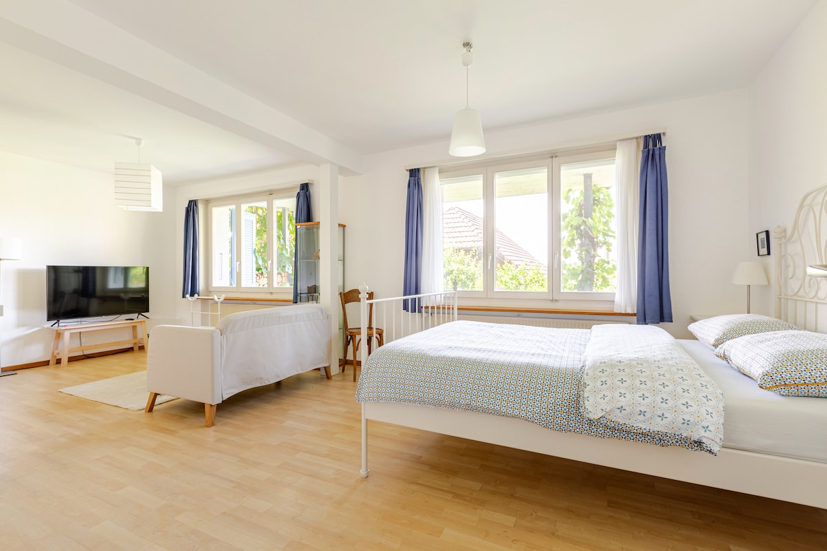 Traumhaftes Studio: Lehne dich zurück und entspanne dich – in dieser ruhigen, stilvollen Unterkunft. Perfekt für Naturliebhaber! Entdecke die Ruhe dieses stilvollen, modernen Neubaustudios, das keine Wünsche offen lässt. Voll ausgestattet und hochwertig möbliert bietet dieses Studio nicht nur Komfort, sondern auch eine idyllische Lage, die Naturliebhaber begeistern wird. Geniesse ruhige Spaziergänge im Grünen und dennoch die Nähe zu allen Annehmlichkeiten des urbanen Lebens.
