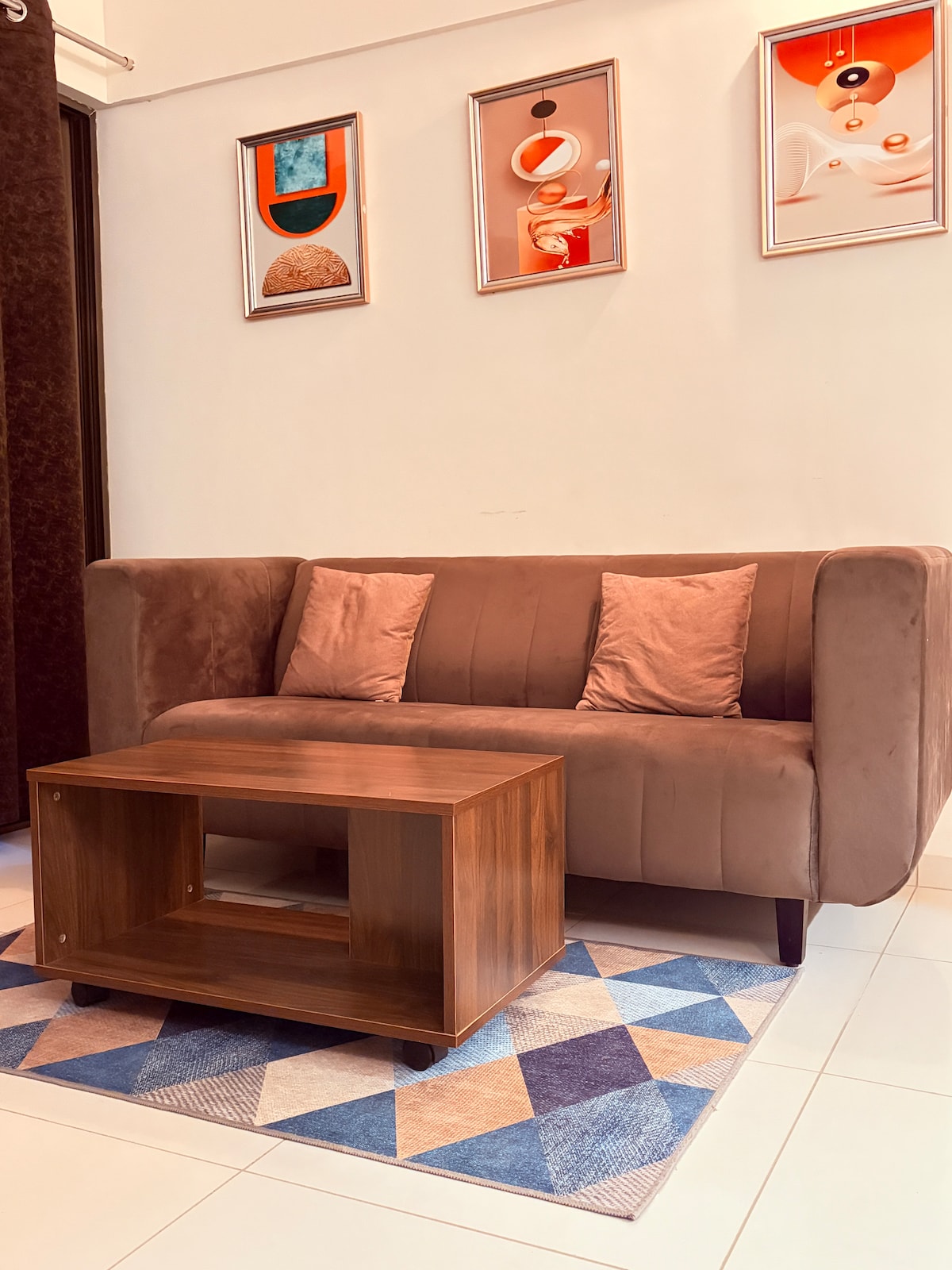 Wake up to stunning sunrise views at The Cozy Cove, a serene retreat in Pune’s Blue Ridge Township. This modern, fully-furnished apartment features a cozy sofa cum bed, a restful bedroom with soft linens, and elegant interiors designed for comfort and style. Enjoy Netflix and chill nights on the smart TV, a serene balcony setup, and a sleek modular kitchen equipped for all your needs. Perfect for couples or small families, it’s a peaceful escape with all the conveniences of home.