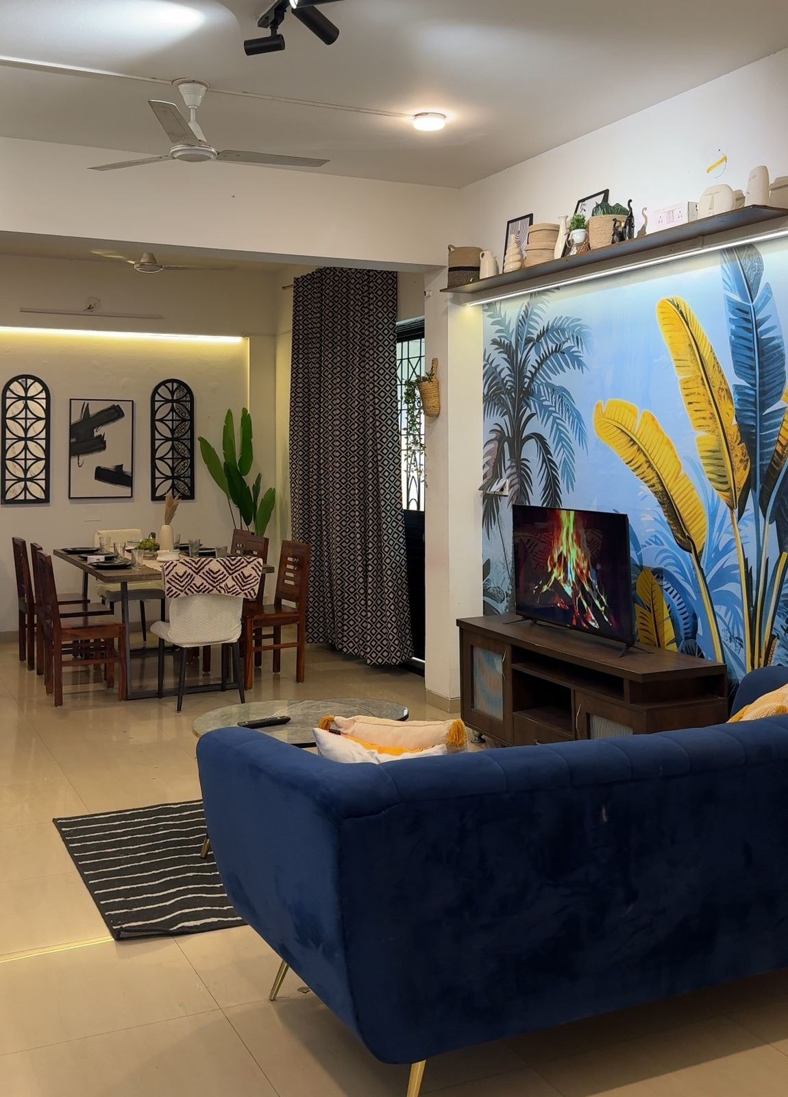 Welcome to The Tropical Haven, a beautifully designed 2BHK apartment in the heart of Hinjewadi Phase 3. Perfect for business travelers, families, and friends, this home offers a seamless blend of comfort and style with a modern tropical-themed décor that brings in warmth and relaxation. What You’ll Love: ✔ Prime Location ✔️ We provide AC in master bedroom and Cooler in second bedroom ✔ Stylish Interiors ✔ Spacious & Comfortable ✔ All Essential Amenities ✔ Secure & Peaceful Stay –