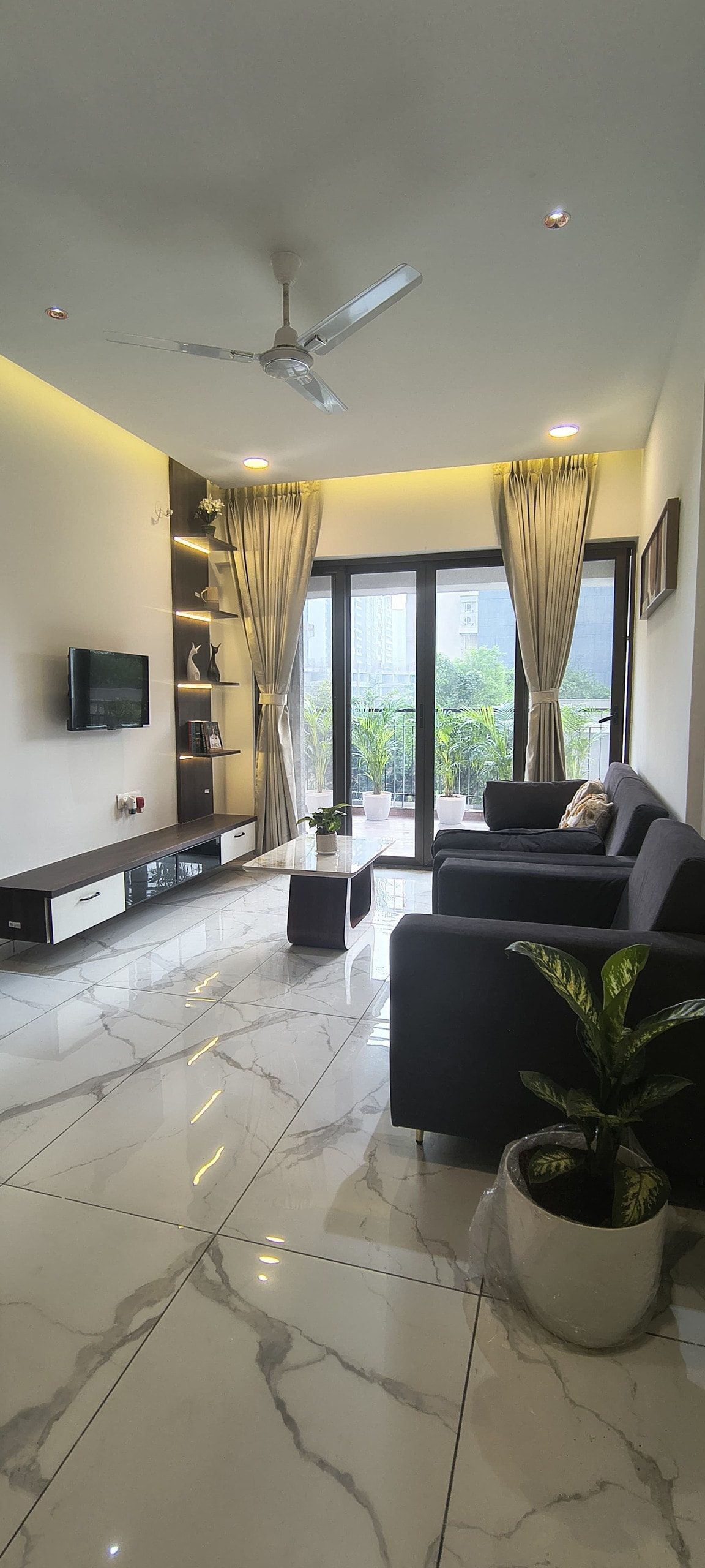 Stylish 1BHK flat in Kohinoor Coral combines modern design with functionality, featuring spacious interiors, a chic modular kitchen, and cozy bedrooms with elegant finishes. The large windows offer stunning views of lush greenery and distant hills, creating a serene retreat. Nestled in a well-planned township, the flat is complemented by premium amenities like a swimming pool, gym and walking tracks, ensuring a vibrant yet peaceful lifestyle amidst nature and modern conveniences.