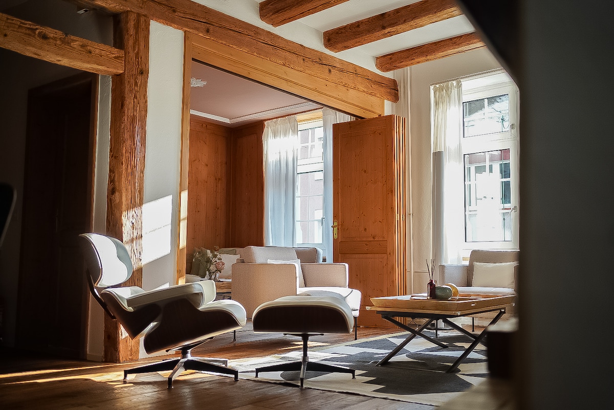 Long-stay kit available! Send us a message for monthly stays. Welcome to our Neumarkt Residences, historic furnished apartments in the heart of Zurich's Old Town. Experience authentic Swiss living with modern comfort. Every detail within these residences has been carefully considered and hand-selected, from the furniture to the artwork. Recently furnished with brand-new interiors, it blends modern comfort with historic charm. The highlight is the private rooftop terrace with city views.