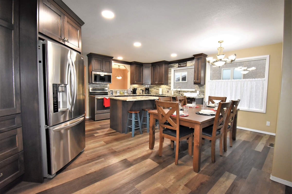 Just an hour from Jasper National Park, this 3-bedroom, 2-bathroom family-friendly home is your ideal home base for mountain exploration. Designed for adventurous families, the property features a fully fenced back yard with firepit, a covered deck, and a BBQ — perfect for post-hike meals and stargazing. Its outdoor Jasper themed interior design and open concept living, dining and kitchen area means your time at the property adds to your holiday experience.