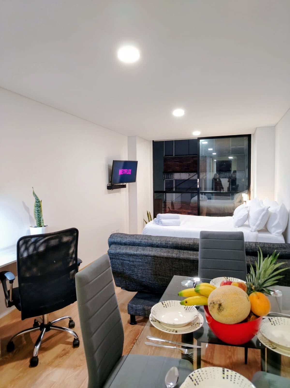Aparta Estudio Full equipado, Ingreso con chapa digital inteligente. 24H de vigilancia y recepción.servicio de Wifi y Netflix. para que te sientas como en casa. Ubicado en Chapinero una zona extrategica de la ciudad con facilidad de transporte publico, cerca de centros academicos, supermercados, zonas financieras,centros comerciales, sitios turisticos, estadio el Campin, Movitsar Arena y una alta demanda de gastronomía. También por un valor adicional sorprende con una linda decoración.
