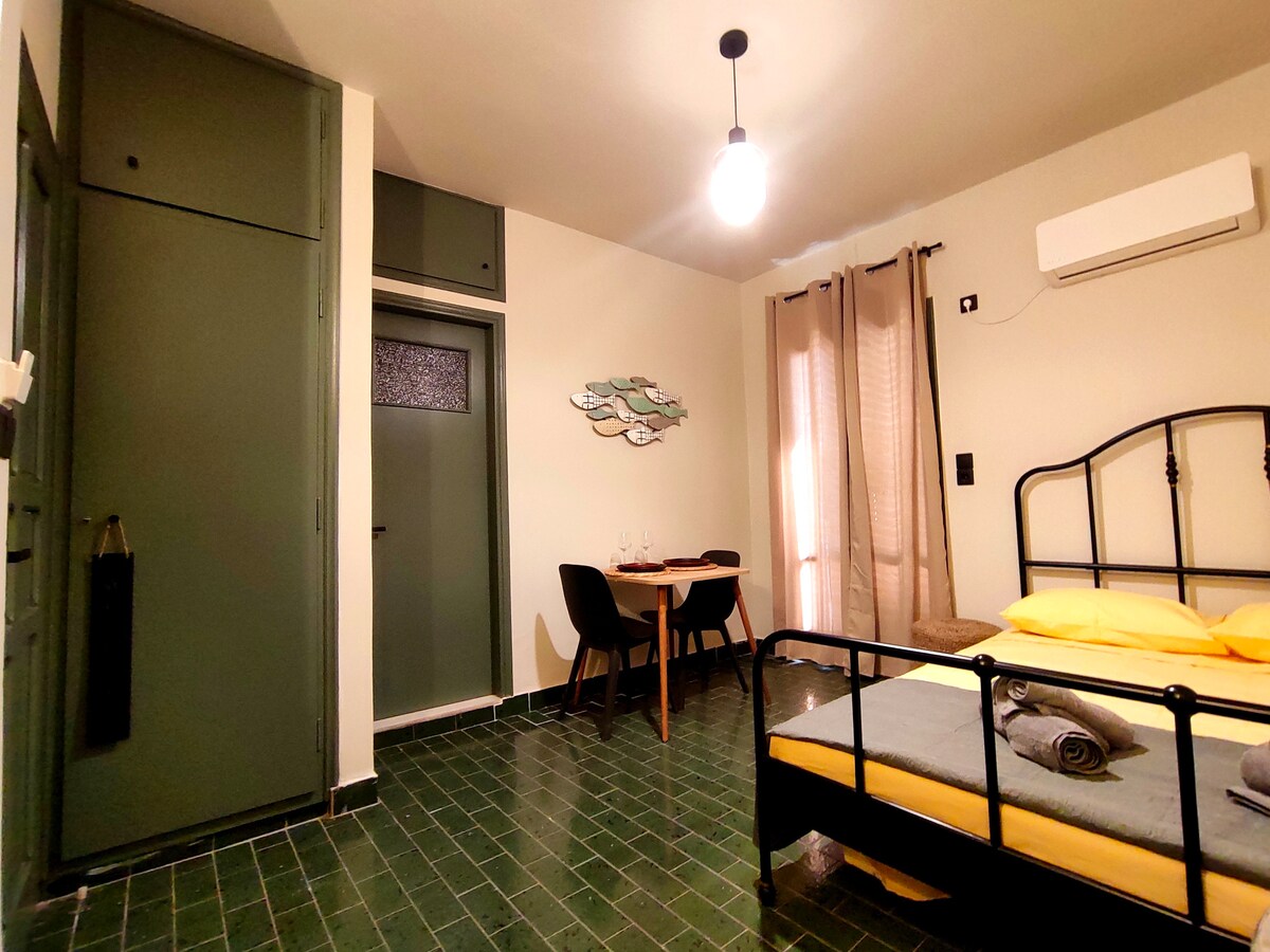 Enjoy a newly renovated studio apartment ,decorated in great style. Perfect for couples or friends! Its located in the heart of Kos city, only 5 mins from the city center, 10 mins walk from the old city and 5 mins walk from the closest beach! Even it is located in a very central spot ,at the same time due to the building's location away from the street, it manages to be very quiet! From its beautiful roof garden you can enjoy the view to the sea and the mountain!
