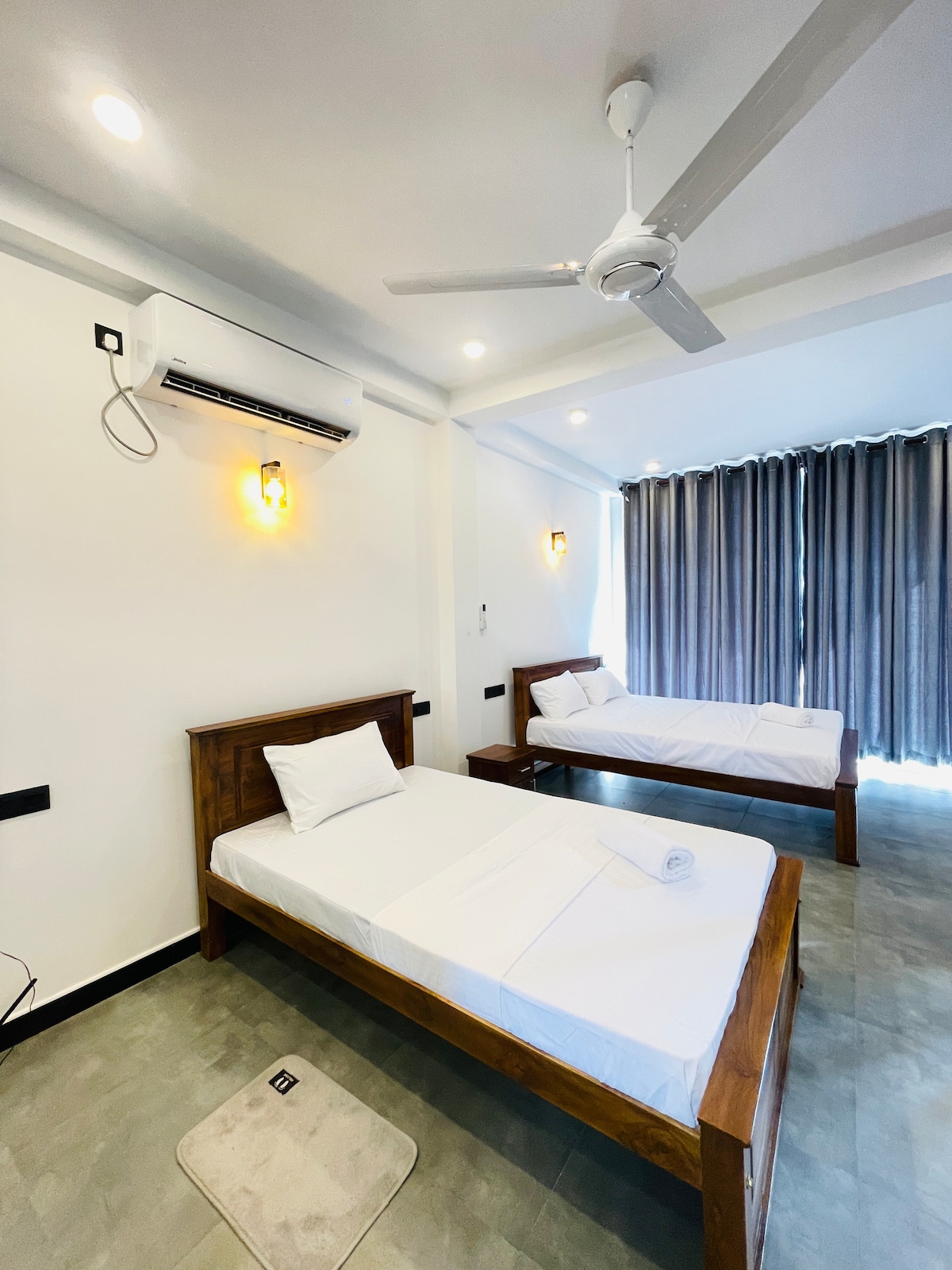Clay Leafe Midigama is a newly built private apartment offering modern facilities and a peaceful stay. Perfect for work and travel, it features high-speed fibre optic internet and a calm, family-friendly atmosphere. Located just 800m from the stunning Midigama Beach, with Ahangama and Weligama only 10 minutes away by scooter, it’s ideal for surfers, travellers, and families. Experience comfort, convenience, and warm hospitality while enjoying your holiday at Clay Leafe Midigama.