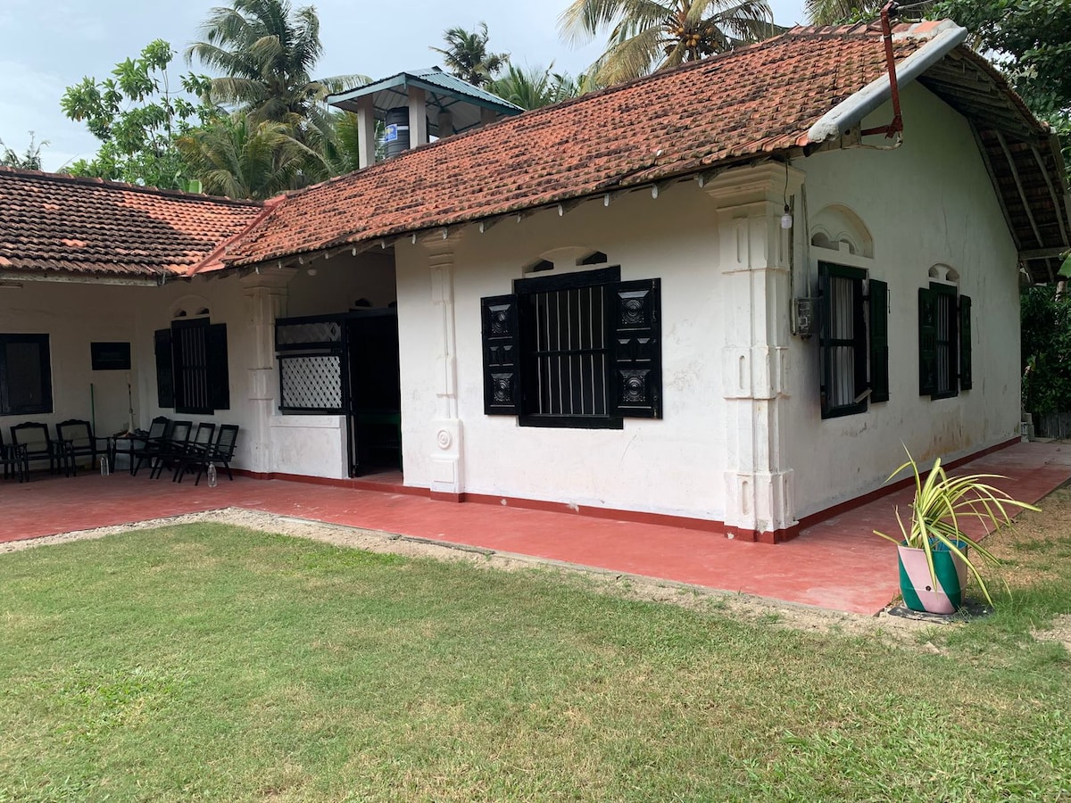 Nestled within a 5 acre coconut and cinnamon estate, this restored cottage sits elevated on the start of a rolling hill and provides commanding views of the turquoise ocean. Quiet and secluded, with DIRECT BEACH ACCESS (secluded beach). There are 2 bedrooms and a shared bathroom, perfect for a family of 4 or 2 couples. The rooms boast luxury bedding and aircon, and kitchen is well equipped. World famous Hiriketiya beach is 8mins drive away. Unique and tranquil getaway. Day cleaner included